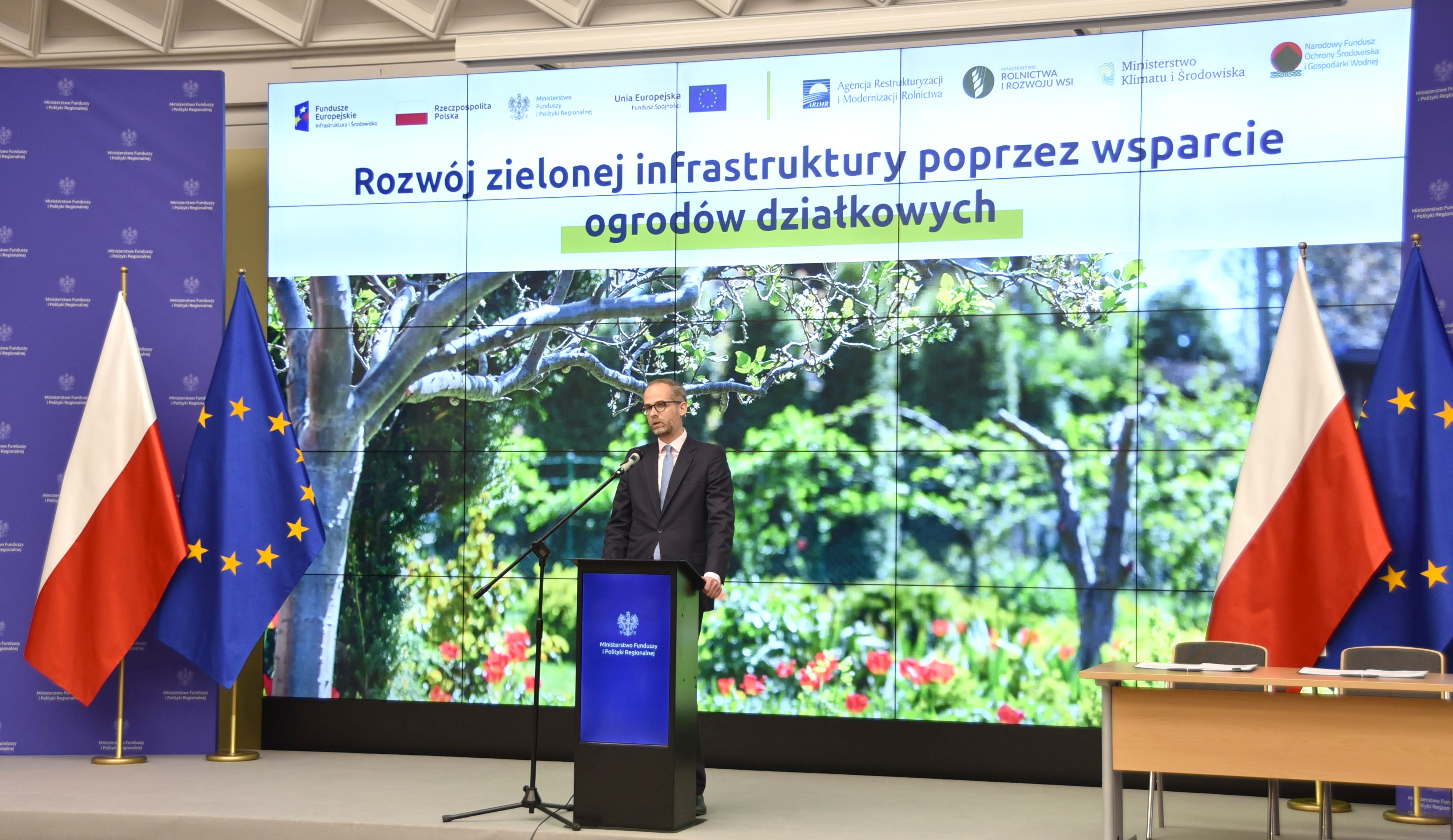 – Mamy świadomość, jak ważną rolę w miastach pełnią rodzinne ogrody działkowe. To miejsca, gdzie można wypoczywać, obcować z przyrodą, ale przede wszystkim to zielone płuca miast. ROD mają bezpośredni wpływ na ekosystemy miejskie - przewietrzanie czy ograniczenie spływu wód opadowych. Dlatego o te tereny musimy dbać w sposób szczególny – mówi minister funduszy i polityki regionalnej Grzegorz Puda.