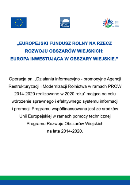 „EUROPEJSKI FUNDUSZ ROLNY NA RZECZ ROZWOJU OBSZARÓW WIEJSKICH: EUROPA INWESTUJĄCA W OBSZARY WIEJSKIE.”