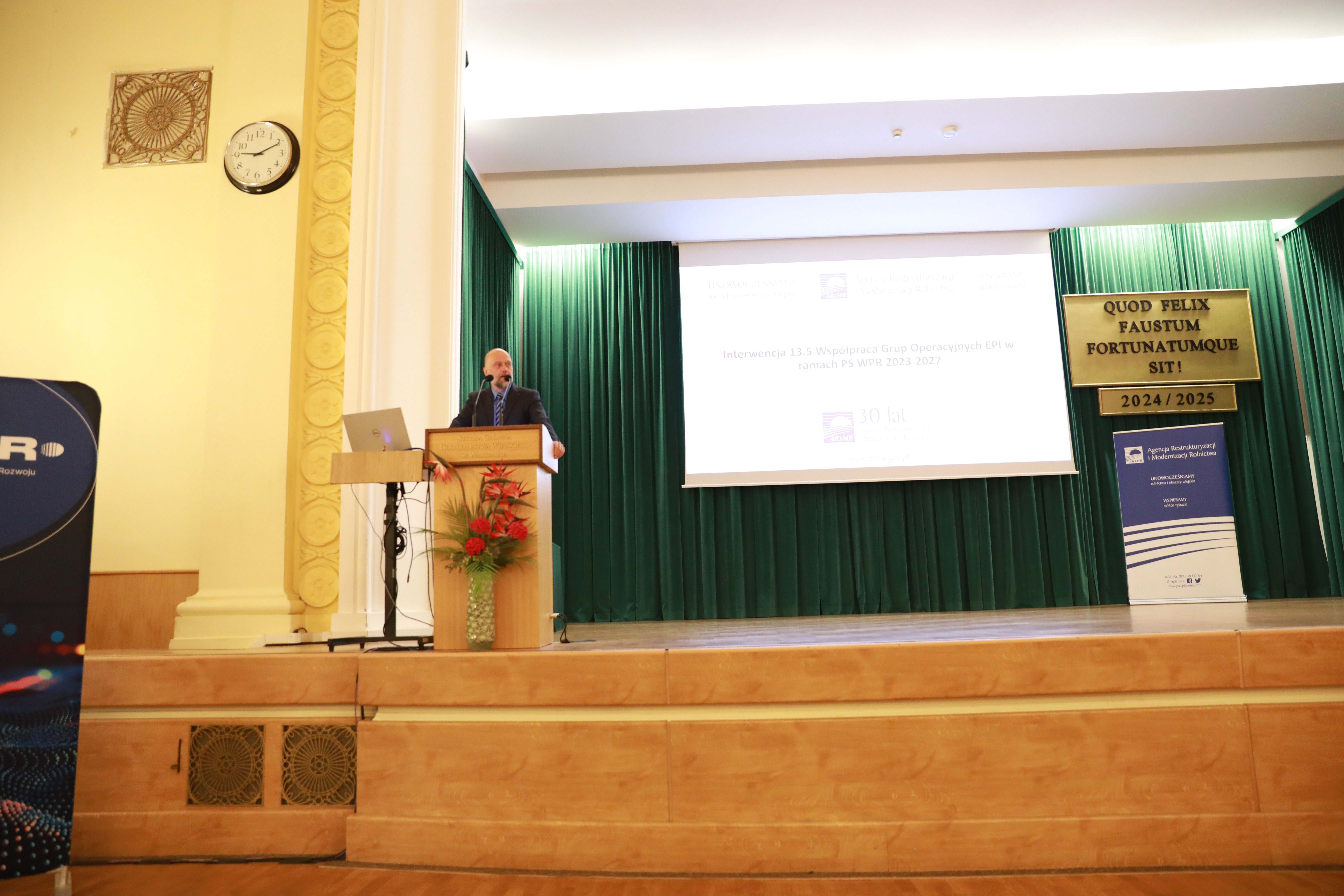 Celem przedsięwzięcia było zapoznanie naukowców z aktualnie dostępnymi projektami badawczymi, przedstawienie sprawozdań z wykorzystanych grantów naukowych oraz integracja środowiska naukowego SGGW. Jednym z gości honorowych wydarzenia był Marcin Zieliński, dyrektor Departamentu Działań Delegowanych ARiMR, który zaprezentował możliwości związane z uzyskaniem wsparcia w ramach „Interwencji 13.5 Współpraca Grup Operacyjnych EPI w ramach PS WPR 2023-2027”.