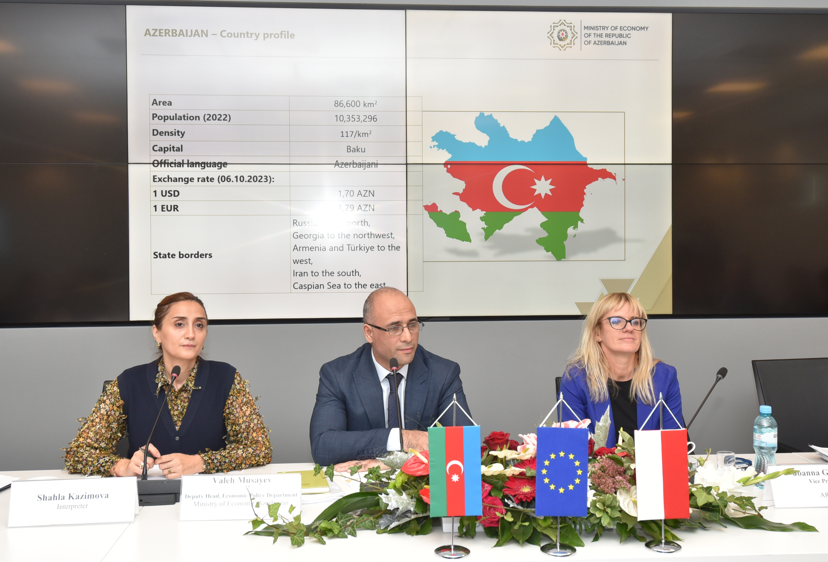 Azerbejdżańskie resorty gospodarki i rolnictwa realizują obecnie zadanie, które ma służyć wsparciu rozwoju obszarów konkurencyjnych – ze szczególnym uwzględnieniem największych gospodarstw, specjalizujących się w uprawie zbóż i winorośli. Celem wizyty delegacji, której przewodniczył zastępca szefa Departamentu Polityki Gospodarczej w Ministerstwie Gospodarki Valeh Musayev, było zapoznanie się z informacjami na temat płatności obszarowych, dobrych standardów produkcji, wsparcia technologicznego, organizacji doradztwa rolniczego oraz specjalnych pożyczek i kredytów. Goście z zainteresowaniem słuchali wystąpień polskich ekspertów, a także zadawali pytania dotyczące przygotowanych specjalnie dla nich prezentacji.