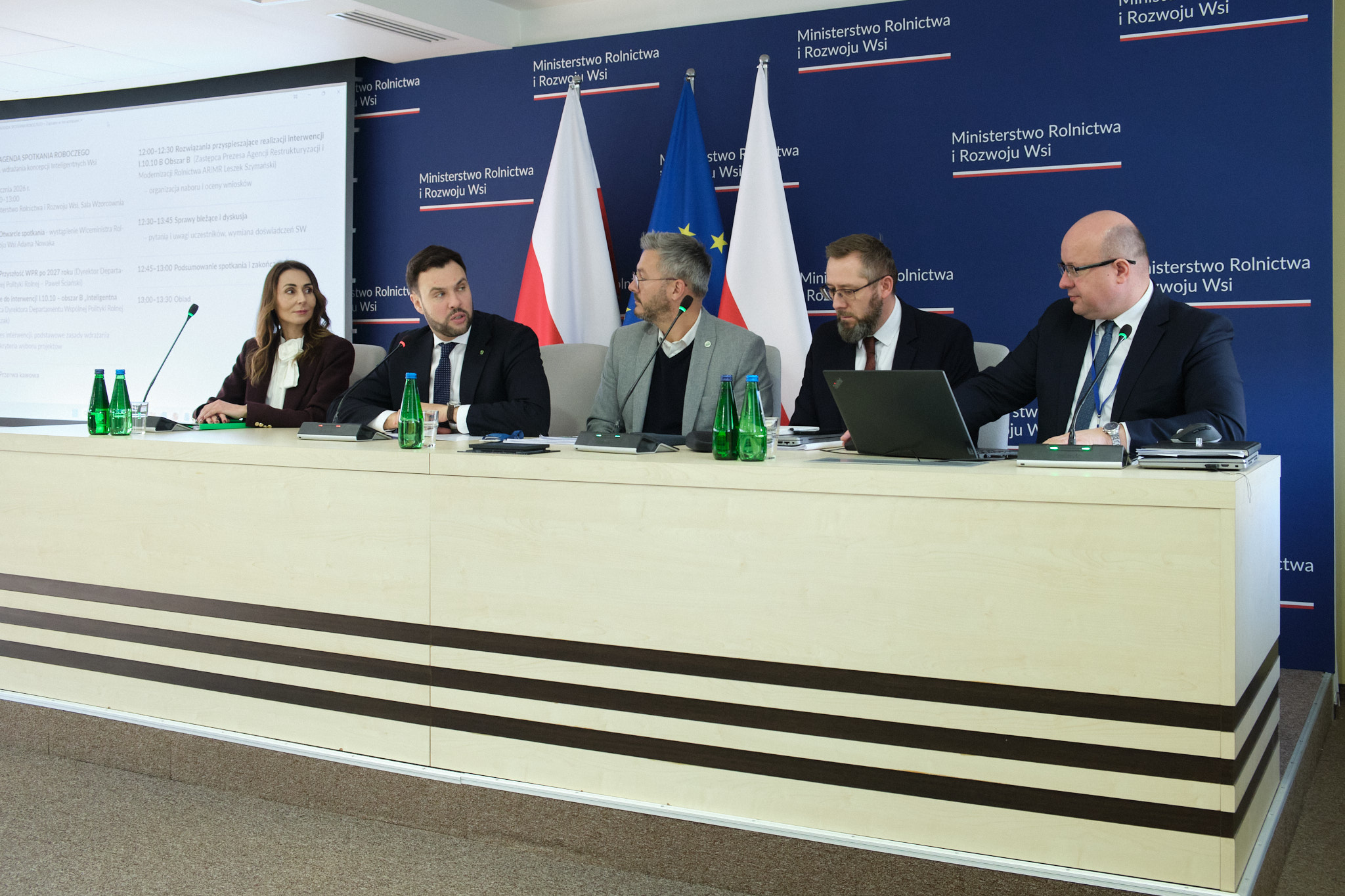 Spotkanie otworzył Adam Nowak, Podsekretarz Stanu w MRiRW. Agencję reprezentowali Leszek Szymański, Zastępca Prezesa oraz Wioletta Krzemińska dyrektor Departamentu Działań Delegowanych, a ze strony ministerstwa udział w spotkaniu wzięli Bogdan Pomianek- Generalny Radca Ministra Rolnictwa i Rozwoju Wsi, Paweł Ściański- dyrektor Departamentu Wspólnej Polityki Rolnej oraz Łukasz Tomczak zastępca dyrektora Departamentu Wspólnej Polityki Rolnej.