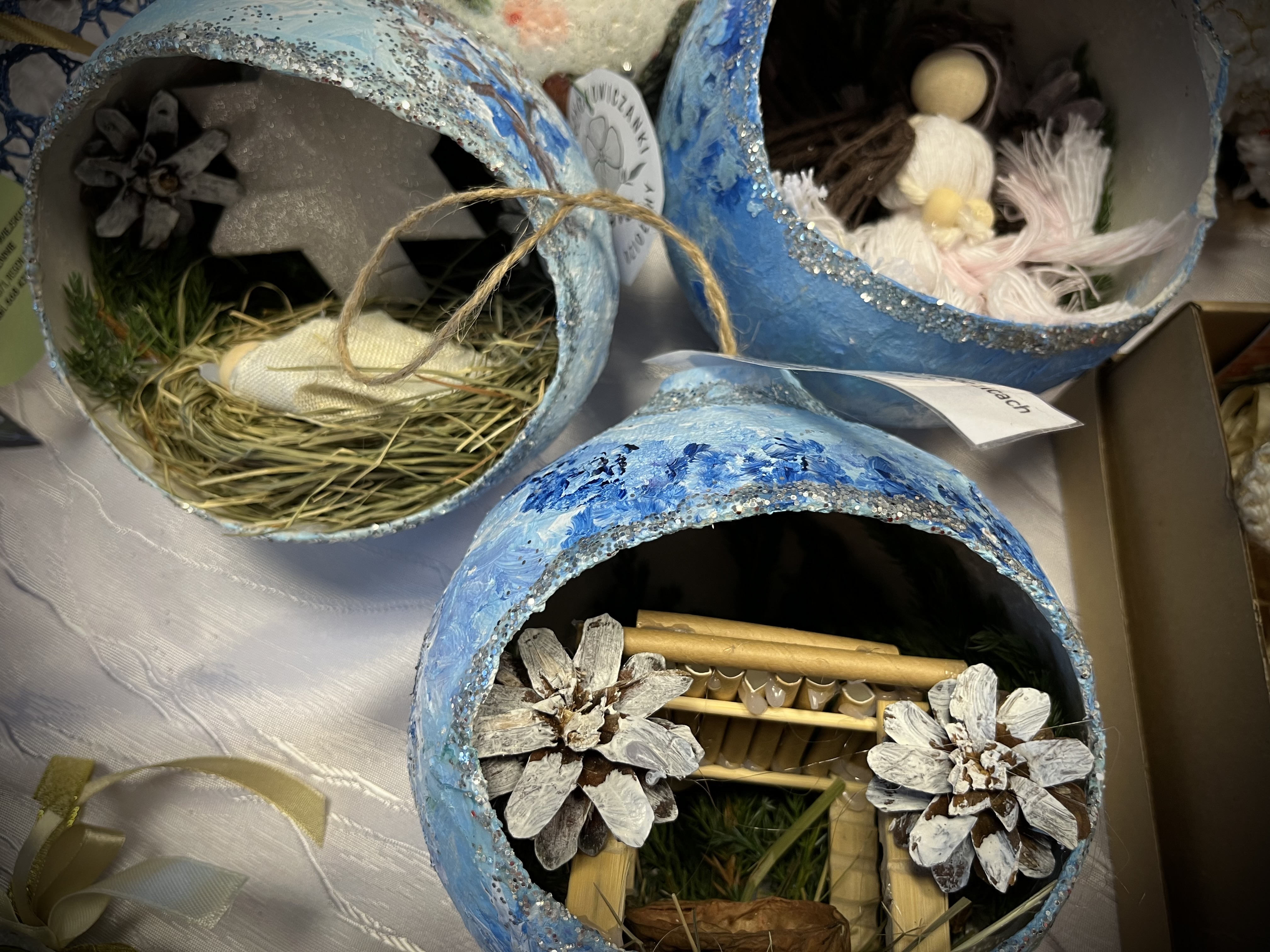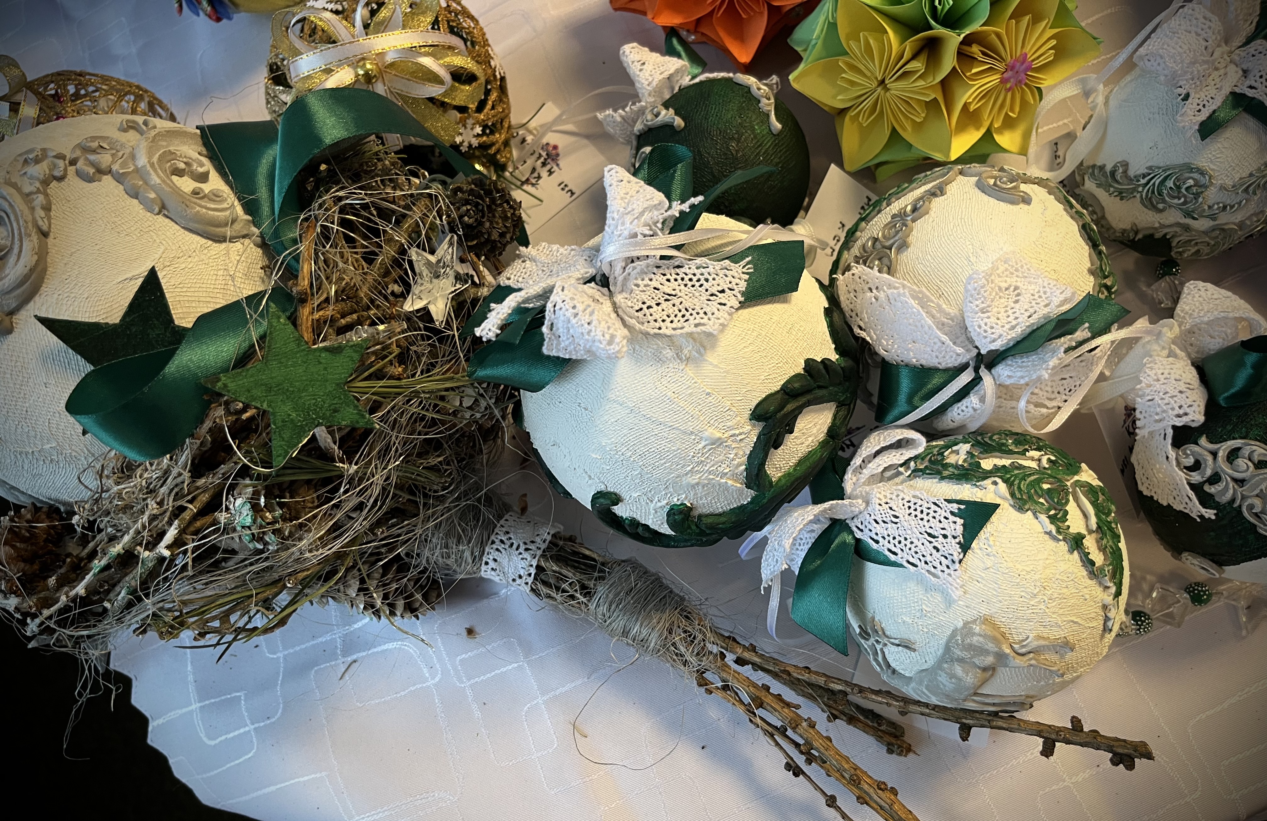 Zadaniem konkursowym było wykonanie bombki choinkowej stosując wszystkie dostępne materiały.