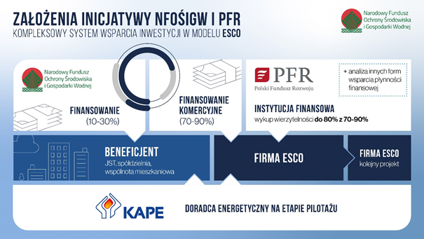 Pilotażowy program jest realizowany we współpracy pomiędzy Narodowym Funduszem Ochrony Środowiska i Gospodarki Wodnej oraz Polskim Funduszem Rozwoju (PFR), którego rola ma polegać na umożliwieniu pozyskania przez przedsiębiorstwo ESCO finansowania w formie wykupu wierzytelności lub w innej, alternatywnej formie.