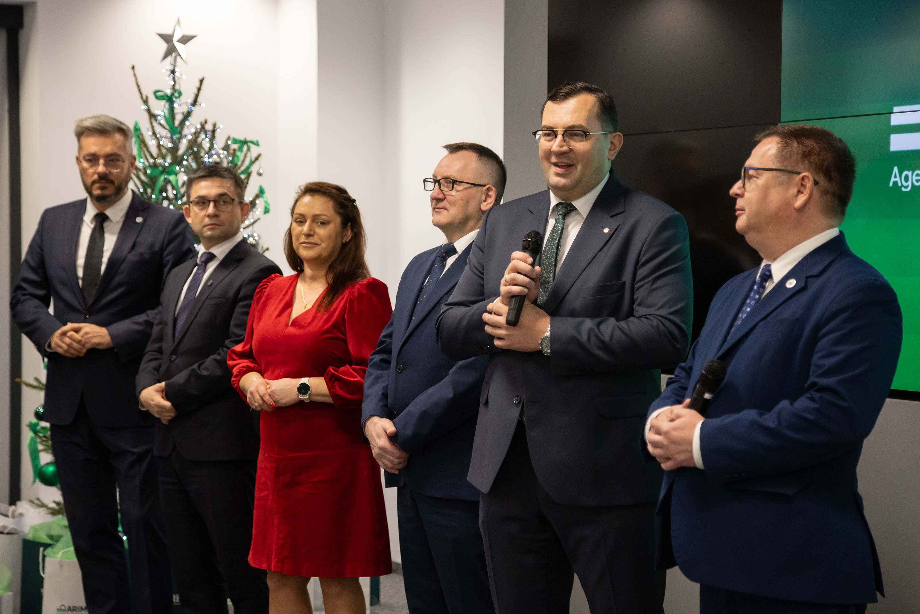 W uroczystej atmosferze 10 grudnia 2025 r. odbyło się coroczne przedświąteczne spotkanie kierownictwa Agencji Restrukturyzacji i Modernizacji Rolnictwa z kilkudziesięcioma pracownikami centrali. W wydarzeniu udział wziął prezes Wojciech Legawiec wraz z zastępcami – Magdaleną Kiciak-Kucharską, Andrzejem Borusiewiczem, Markiem Budzichem i Leszkiem Szymańskim. Wśród gości pojawił się również minister rolnictwa i rozwoju wsi Stefan Krajewski, który m.in. podziękował całej społeczności ARiMR za wysiłek wkładany w realizację codziennych zadań.