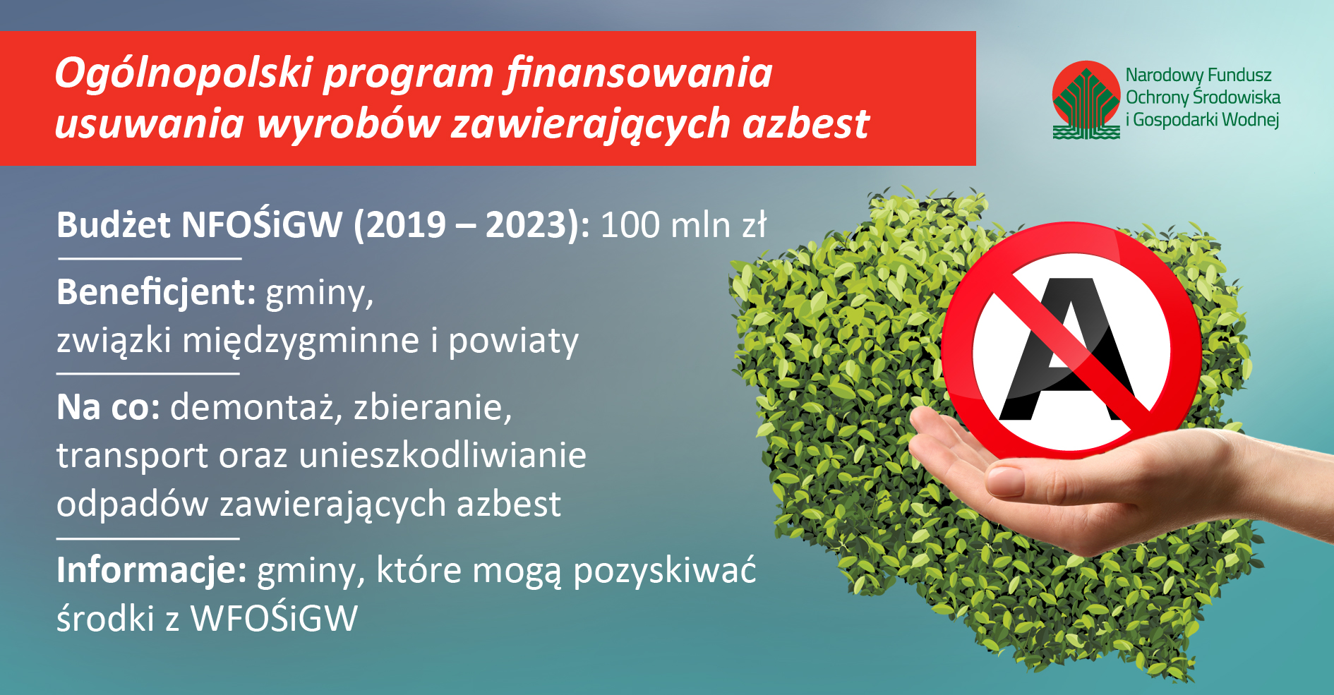 Informacje o programie na stronie NFOŚiGW: http://www.nfosigw.gov.pl/oferta-finansowania/srodki-krajowe/programy-priorytetowe/usuwaniawyrobwzawierajcychazbest