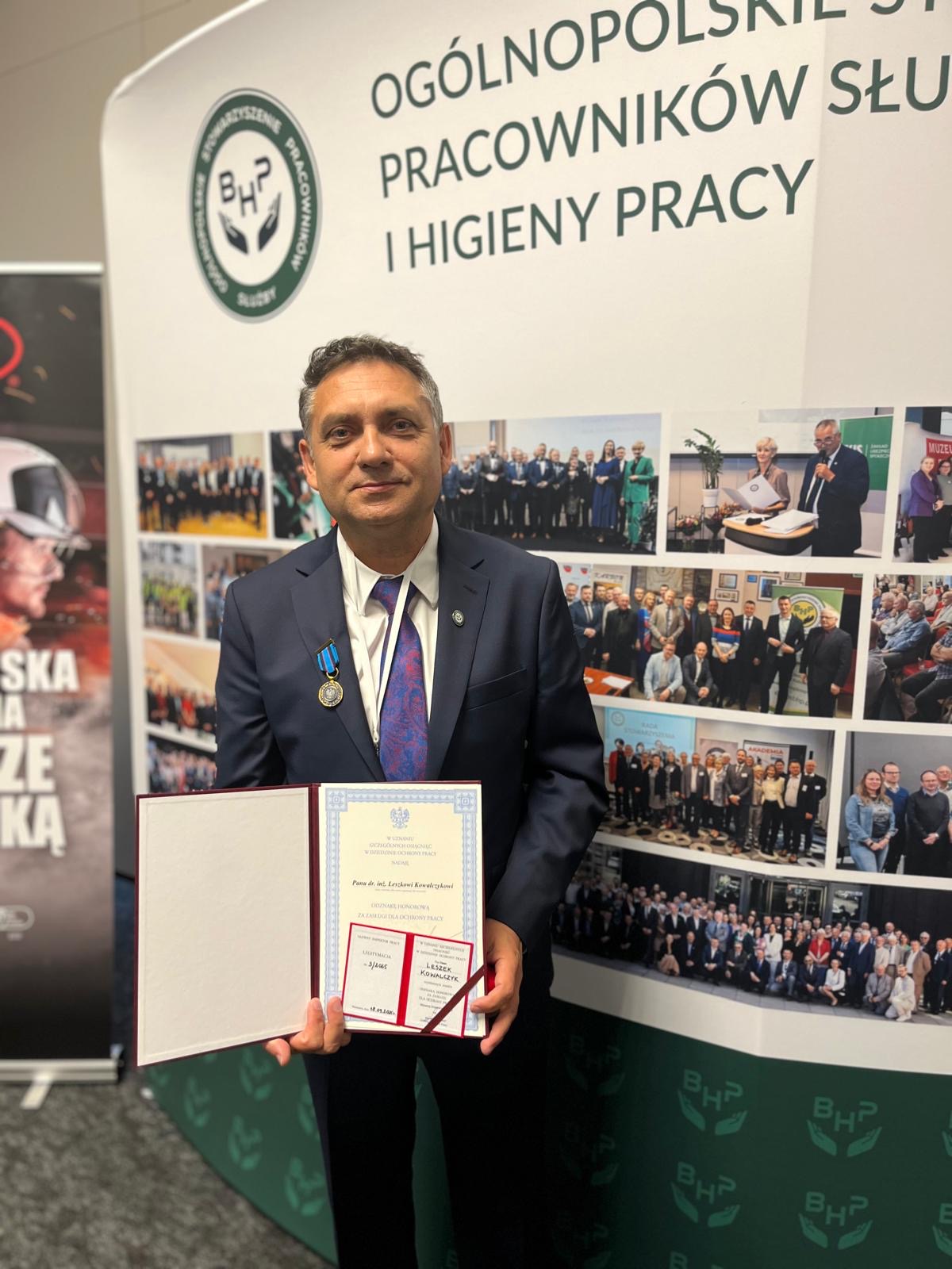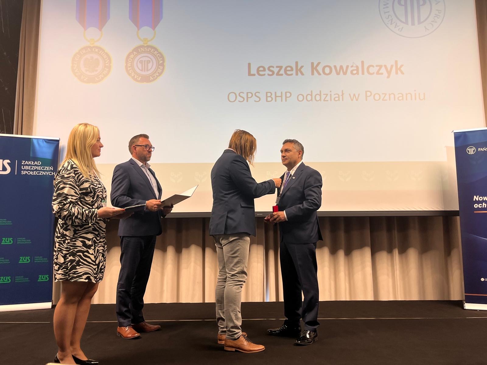 Dr inż. Leszek Kowalczyk, pracownik Wielkopolskiego Oddziału Regionalnego ARiMR został wyróżniony „Odznaką Honorową za Zasługi dla Ochrony Pracy”, przyznaną przez Głównego Inspektora Pracy Marcina Staneckiego. Miało to miejsce podczas VII Ogólnopolskiego Forum Służb BHP, które odbyło się w terminie 18-19 września 2025 r. w Warszawie. To zaszczytne wyróżnienie nadawane jest osobom i organizacjom za szczególne osiągnięcia w dziedzinie ochrony pracy, np. za wprowadzanie innowacyjnych rozwiązań poprawiających bezpieczeństwo i warunki pracy.