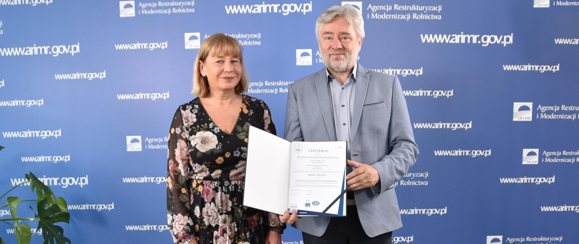 Wręczenie dokumentu odbyło się 3 czerwca 2022 r. w centrali Agencji w Warszawie. Certyfikat odebrała Renata Mantur, zastępca prezesa ARiMR, a wręczył go Jacek Wasiłowski, audytor wiodący w PRS.