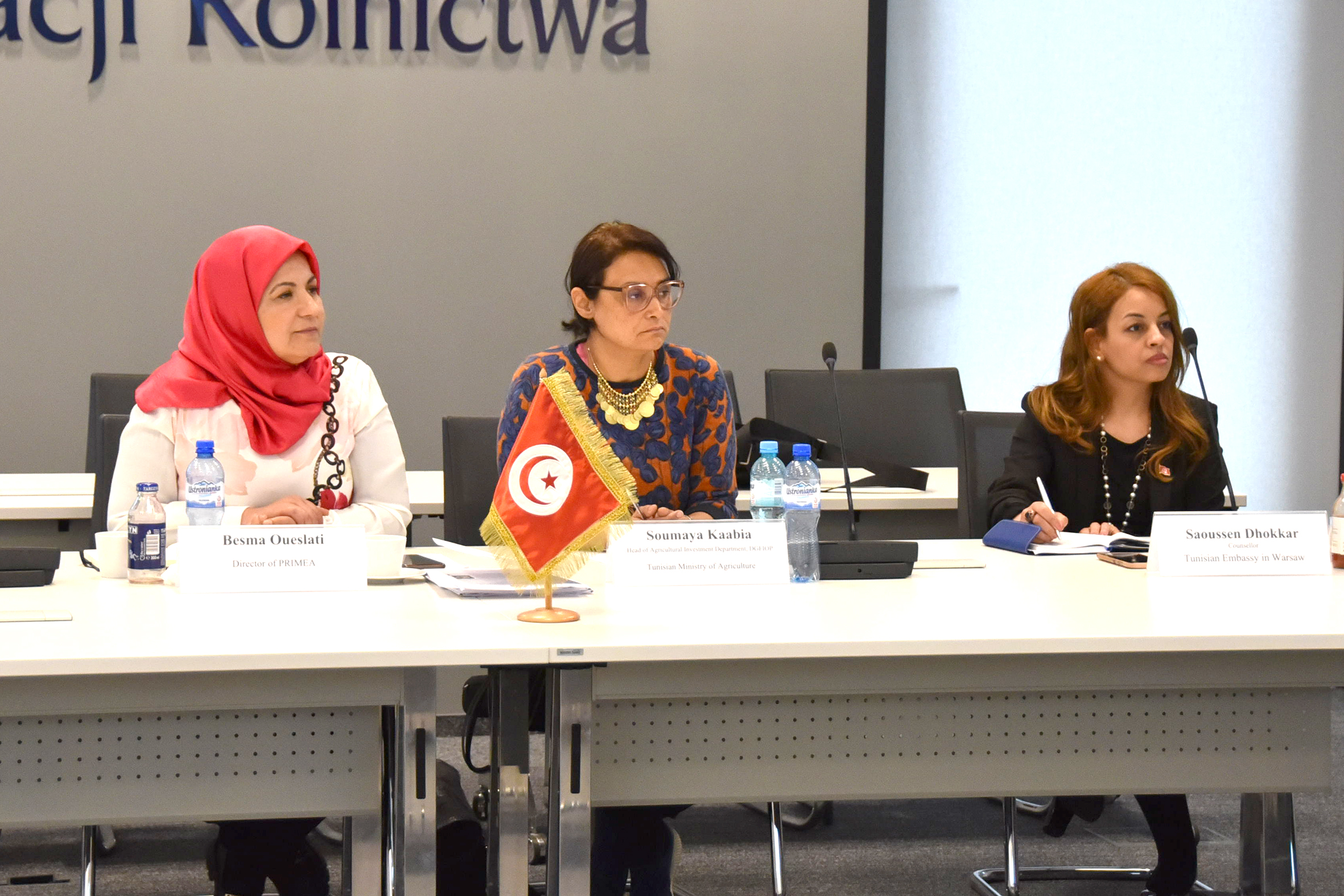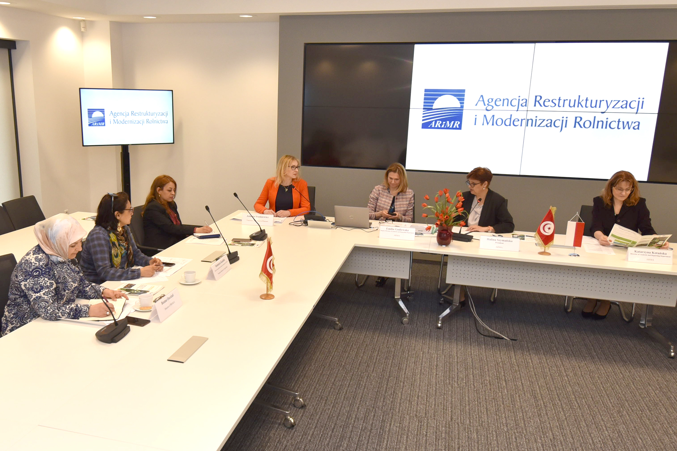 Podczas powitalnego spotkania reprezentujące Ministerstwo Rolnictwa, Zasobów Wodnych i Rybołówstwa Soumaya Kaabia i Besma Ouselati z Programu Odbudowy Inwestycji i Modernizacji Gospodarstw Rolnych PRIMEA, którym towarzyszyły przedstawicielki Ambasady Tunezji w Polsce, opowiedziały o rolnictwie w ich kraju. Okazało się, że niewielkie gospodarstwa, jest ich 80 proc., prowadzą najczęściej kobiety. By tamtejsza wieś mogła inwestować i się rozwijać, niezbędne jest wsparcie finansowe. Przedstawicielki tunezyjskiego sektora rolnego chcą się dowiedzieć jak najwięcej o różnych działaniach pomocowych, które sprawdziły się na polskim gruncie. Im będą poświęcone wszystkie aktywności, które zostały zaplanowane w trakcie trzydniowej wizyty studyjnej.