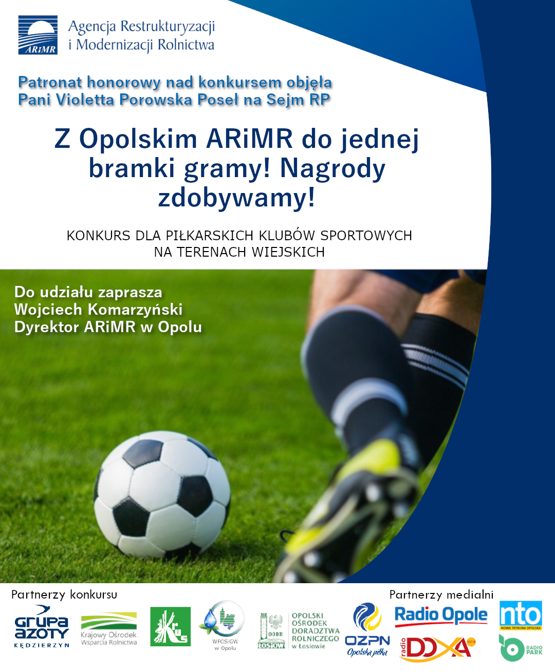Zachęcamy do wzięcia udziału w konkursie skierowanym do piłkarskich klubów sportowych zlokalizowanych na terenach wiejskich województwa opolskiego pt. „Z Opolskim ARiMR do jednej bramki gramy! Nagrody zdobywamy!”.