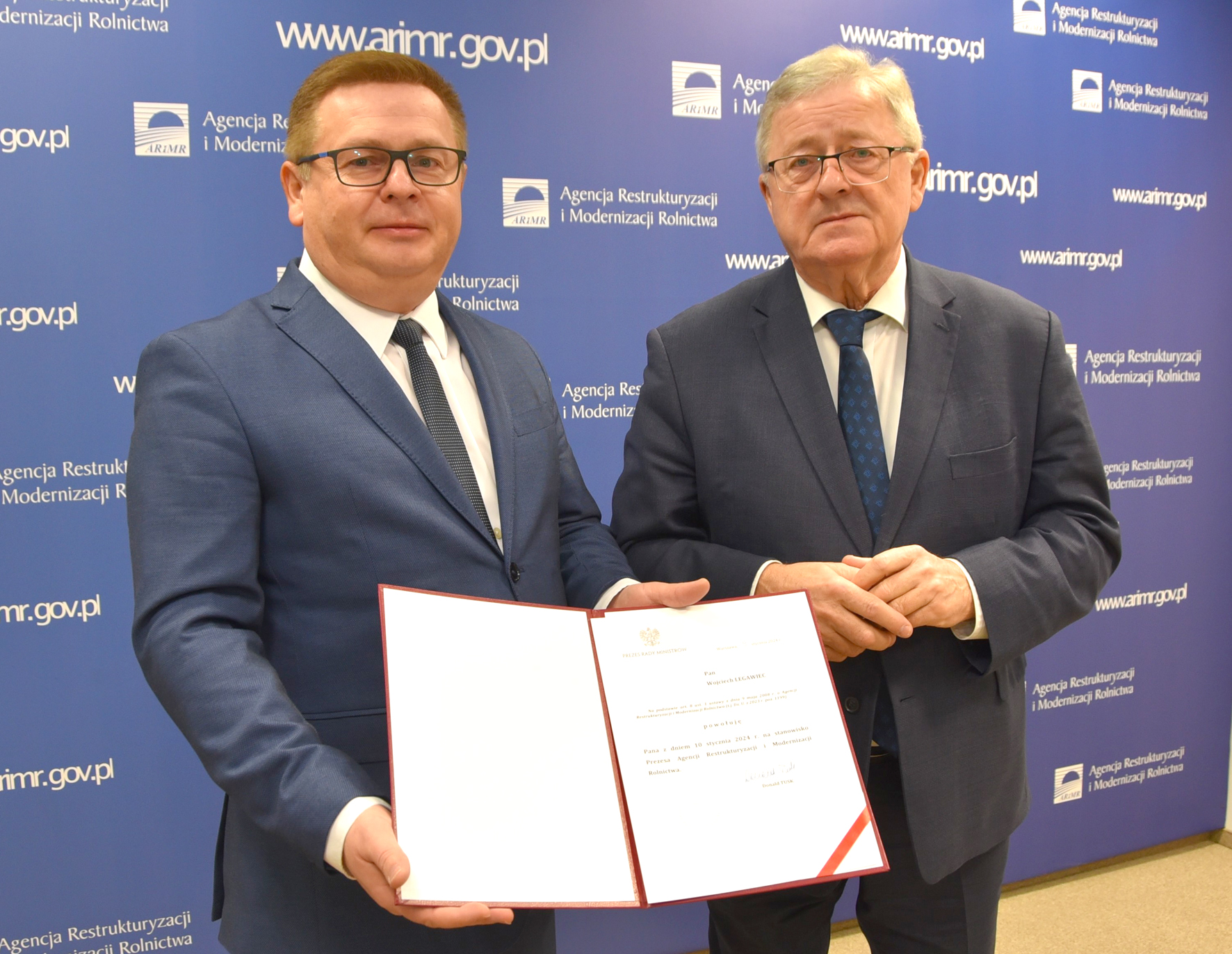 Wojciech Legawiec został powołany z dniem 10 stycznia 2024 r. przez premiera Donalda Tuska na stanowisko Prezesa Agencji Restrukturyzacji i Modernizacji Rolnictwa.