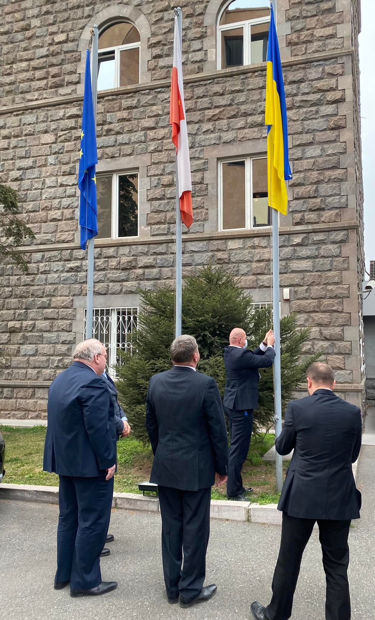 W podniesieniu flagi uczestniczyli Ambasador RP w Erywaniu Pan Paweł Cieplak, I Radca Ambasady RP w Erywaniu Pan Krzysztof Bartczak, Chargé d'affaires a.i. Ambasady Ukrainy w Erywaniu Pan Denys L. Avtonomov i I Sekretarz Ambasady Ukrainy w Erywaniu Pan Serhii Kulyk.