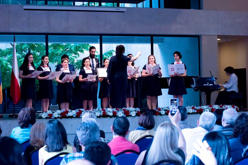 Goście wysłuchali koncertu pieśni patriotycznych w wykonaniu chóru "Gwiazdeczka" pod kierownictwem Rozy Sargsyan i Liany Pirumowej oraz chóru "Malwy" pod kierownictwem Anahit Ter - Meliksetyan. Członkowie "Polonii" z Erywania i z Giumri uczęszczający na lekcje języka polskiego oraz studentki Państwowego Uniwersytetu im. Briusowa przygotowali występy recytatorskie. Odbyła się też wystawa prac plastycznmych poświęconych Polsce.