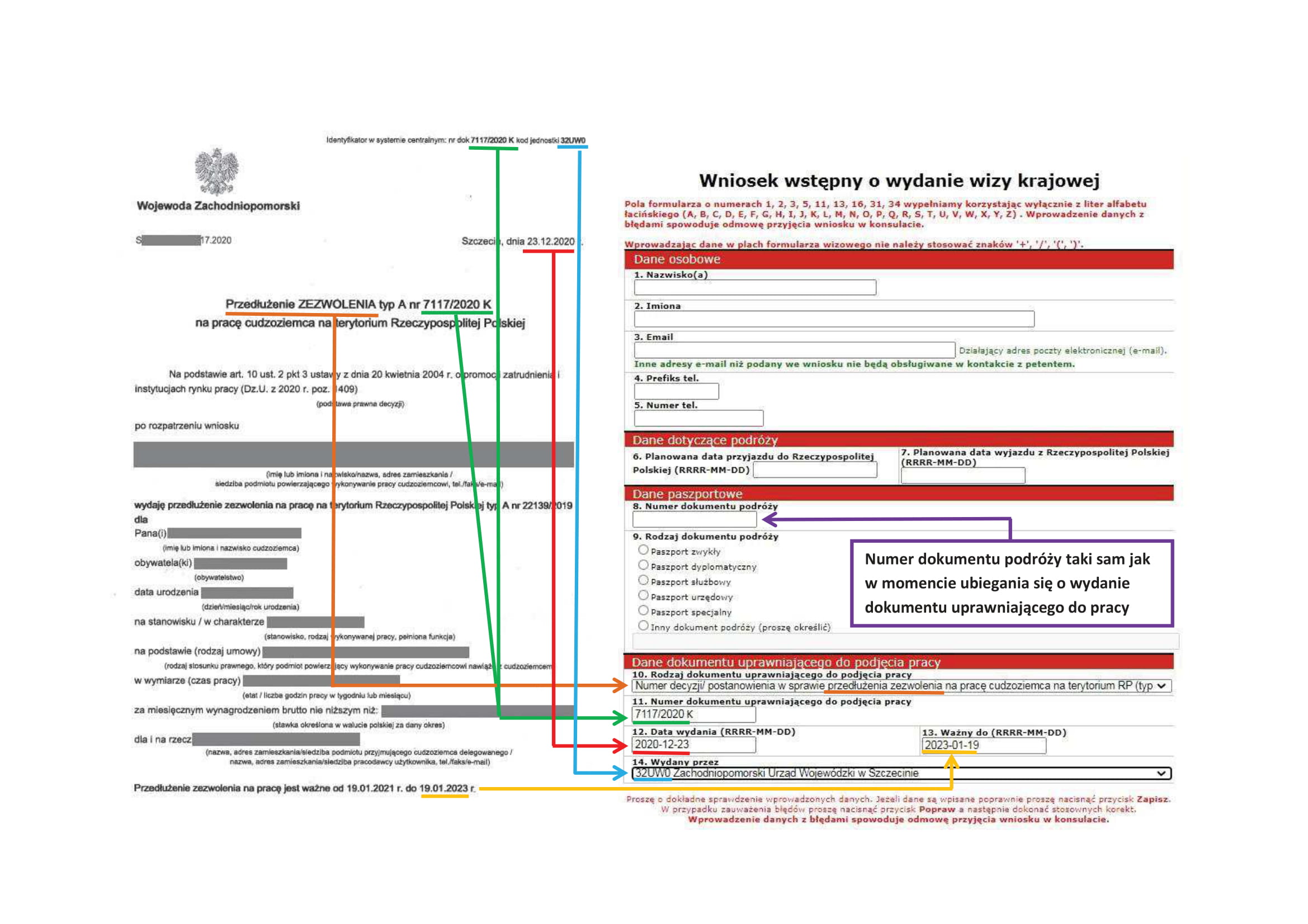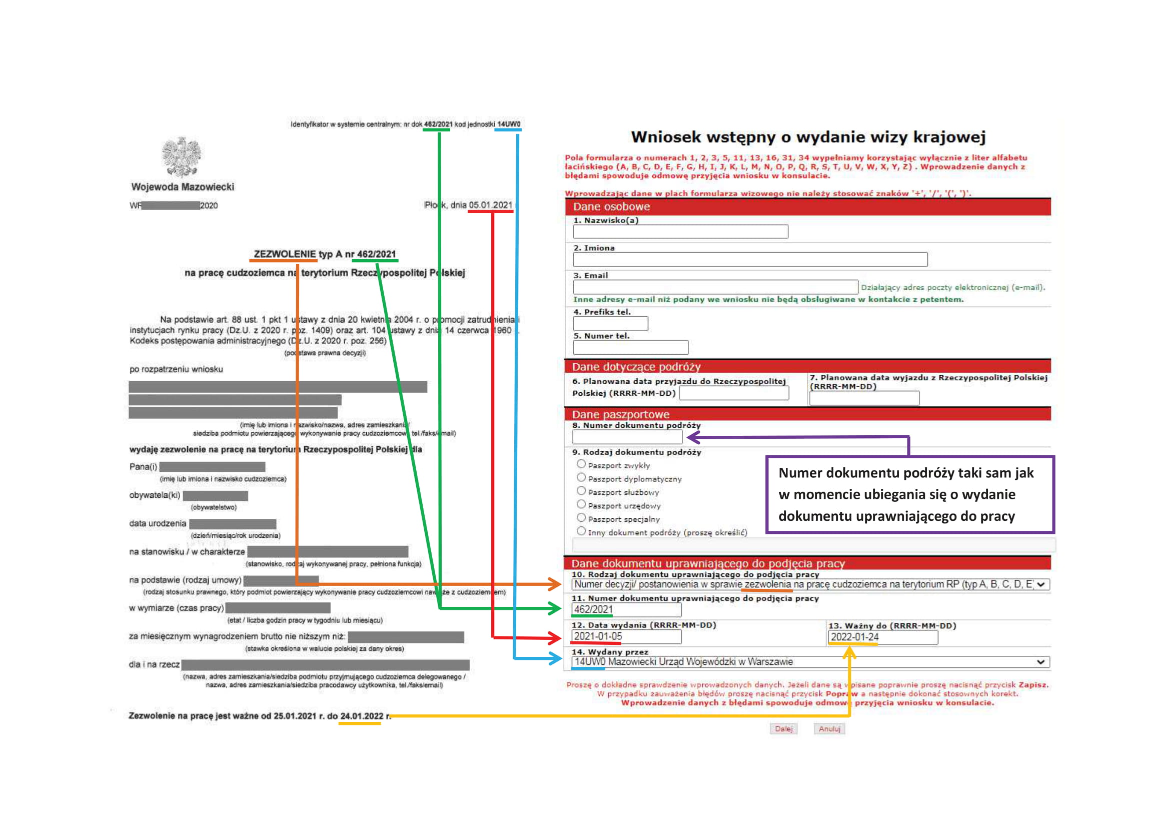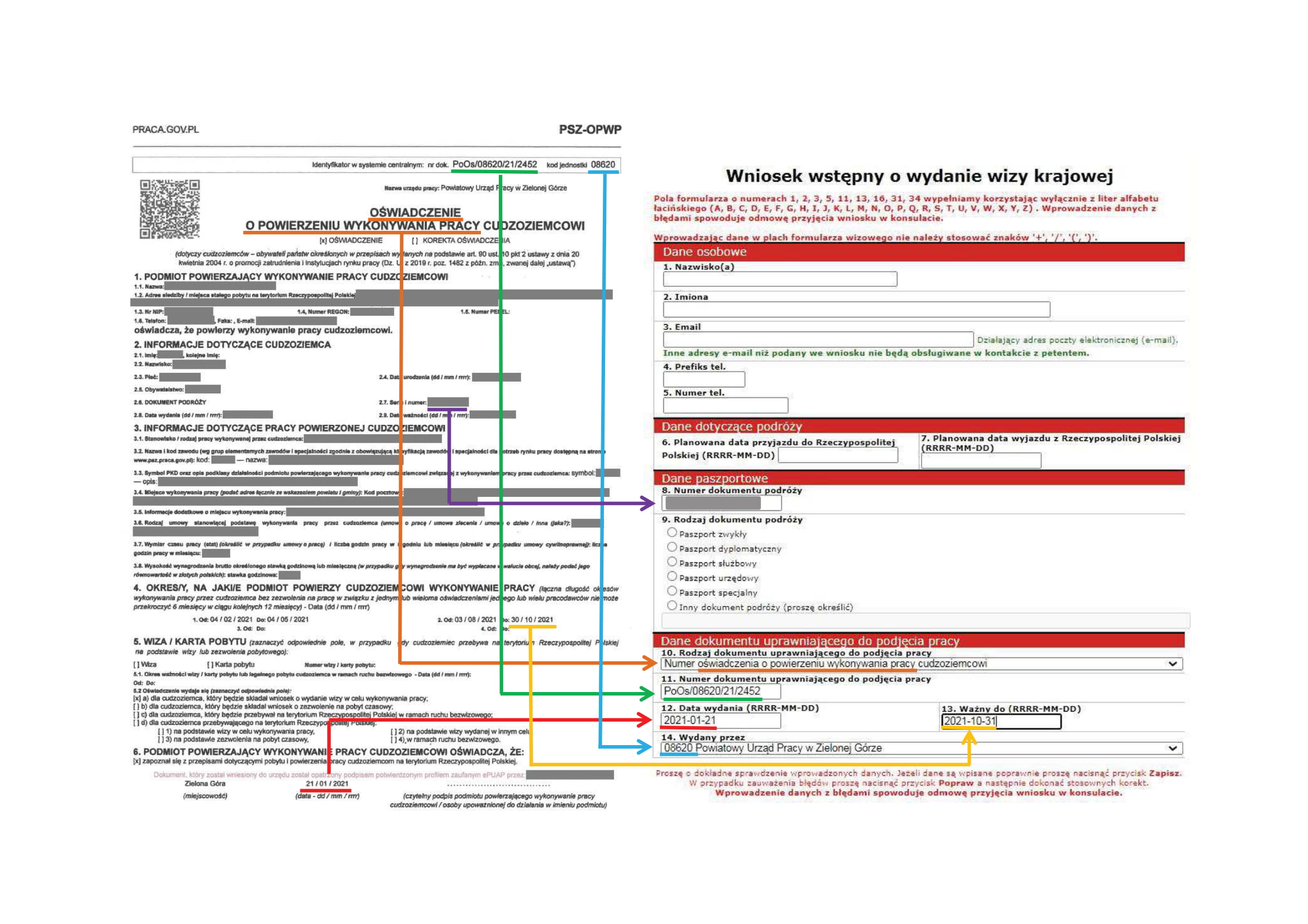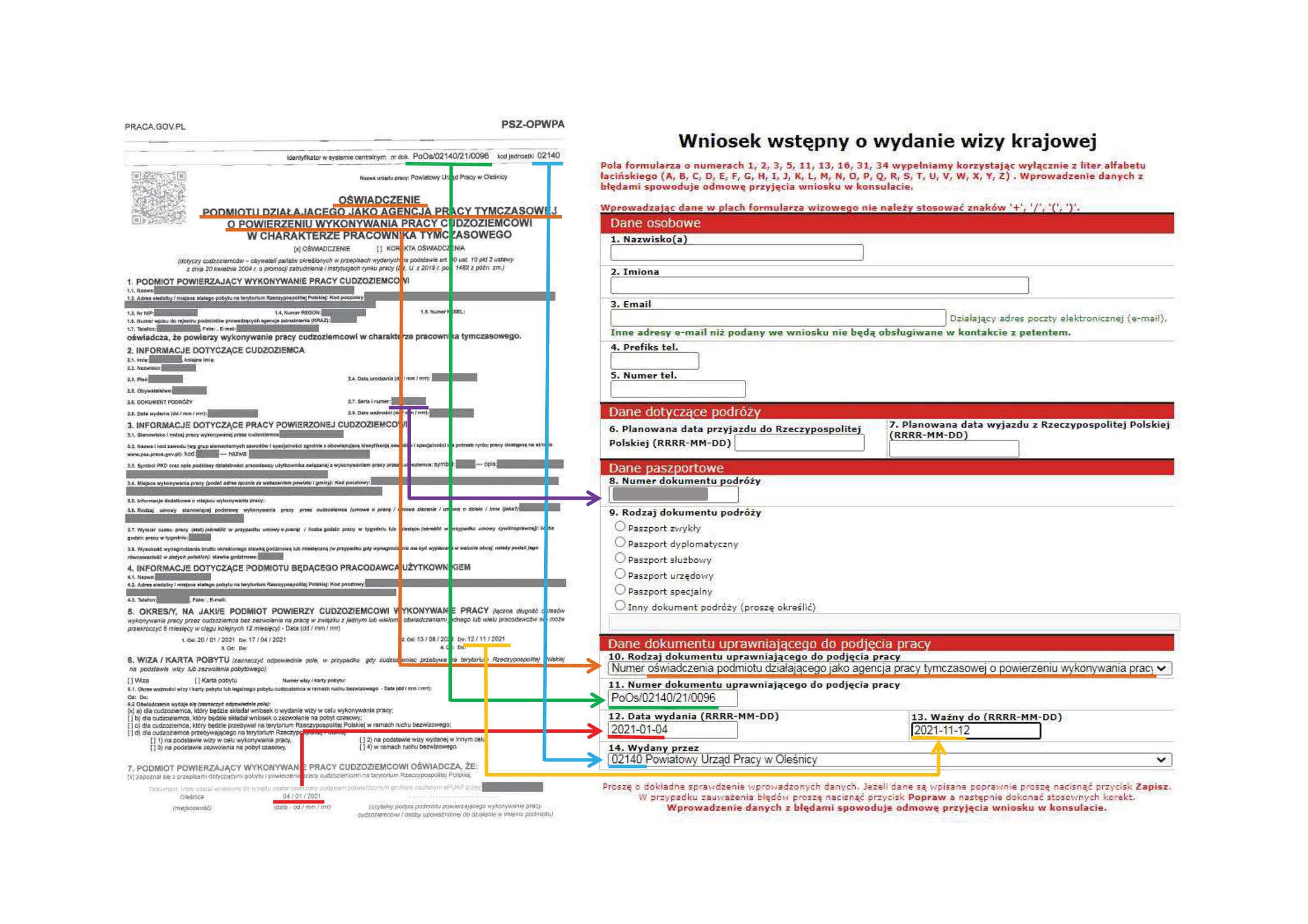 - pełne dane osobowe, serię i numer paszportu zagranicznego osoby zapraszanej; cel i czas trwania wizyty (daty, liczba dni i wjazdów).