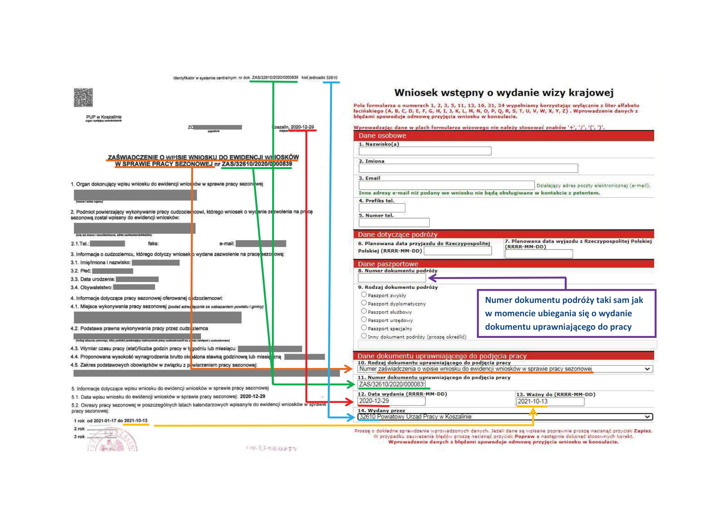 - data wpisu wniosku do ewidencji wniosków w sprawie pracy sezonowej, okres/y pracy.