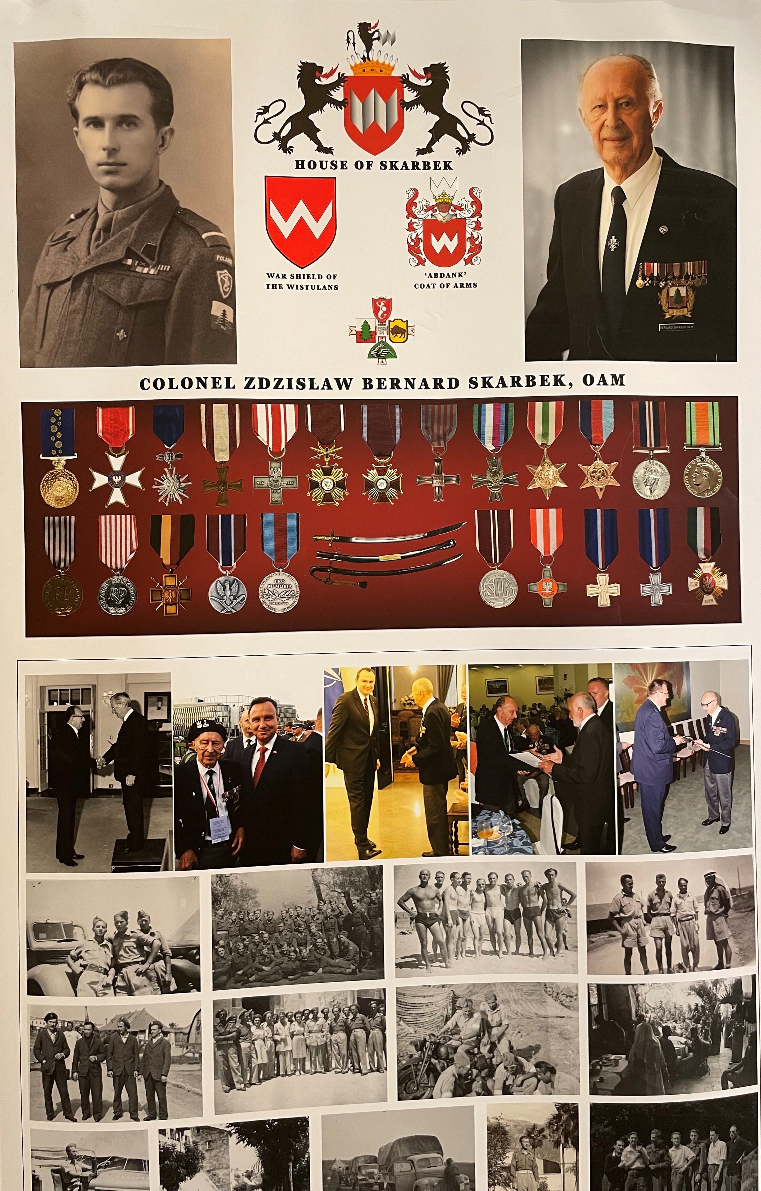 Colonel Zdzisław Bernard Skarbek was born on 1 July 1921. After the outbreak of World War II, in February 1940, he and his family were deported to Siberia and sentenced to 10 years in Gulag forced-labor camp. Mr. Skarbek joined the Polish Armed Forces in the East in 1942. As a member of Polish II Corps he took part in the Italian campaign, including in the battles of Monte Cassino, Ancona, Loreto and Bologna. After the war, he settled in Great Britain and then in Australia. From 1956, Mr. Skarbek was active in the Polish Ex-Serviceman's Association Branch Australia. He is the highest ranking Polish army veteran in Australia and was awarded with 23 Polish and Australian medals. His autobiography entitled “Bernard Zdzisław Skarbek, a Polish patriot for life” was published in June 2021.