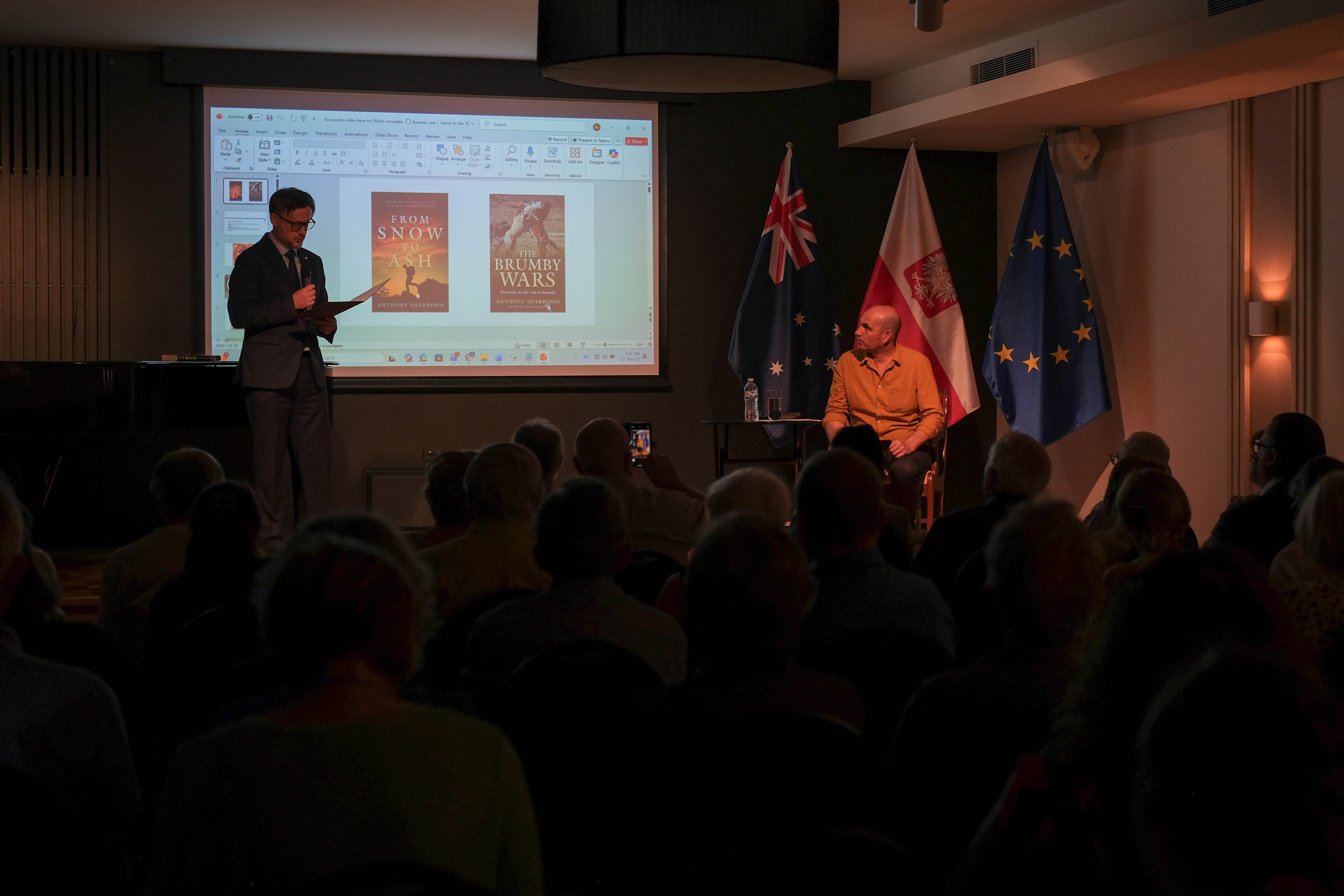 On November 27, 2025 the Consulate General of the Republic of Poland in Sydney hosted a meeting with Mr. Anthony Sharwood, author of the book "Kościuszko: The Extraordinary Life of a Man from Beyond the Mountain." The book took third place in the category "Best Foreign-Language Publication on Polish History" of the Polish Ministry of Foreign Affairs Competition for the best history book published in 2023 and 2024.