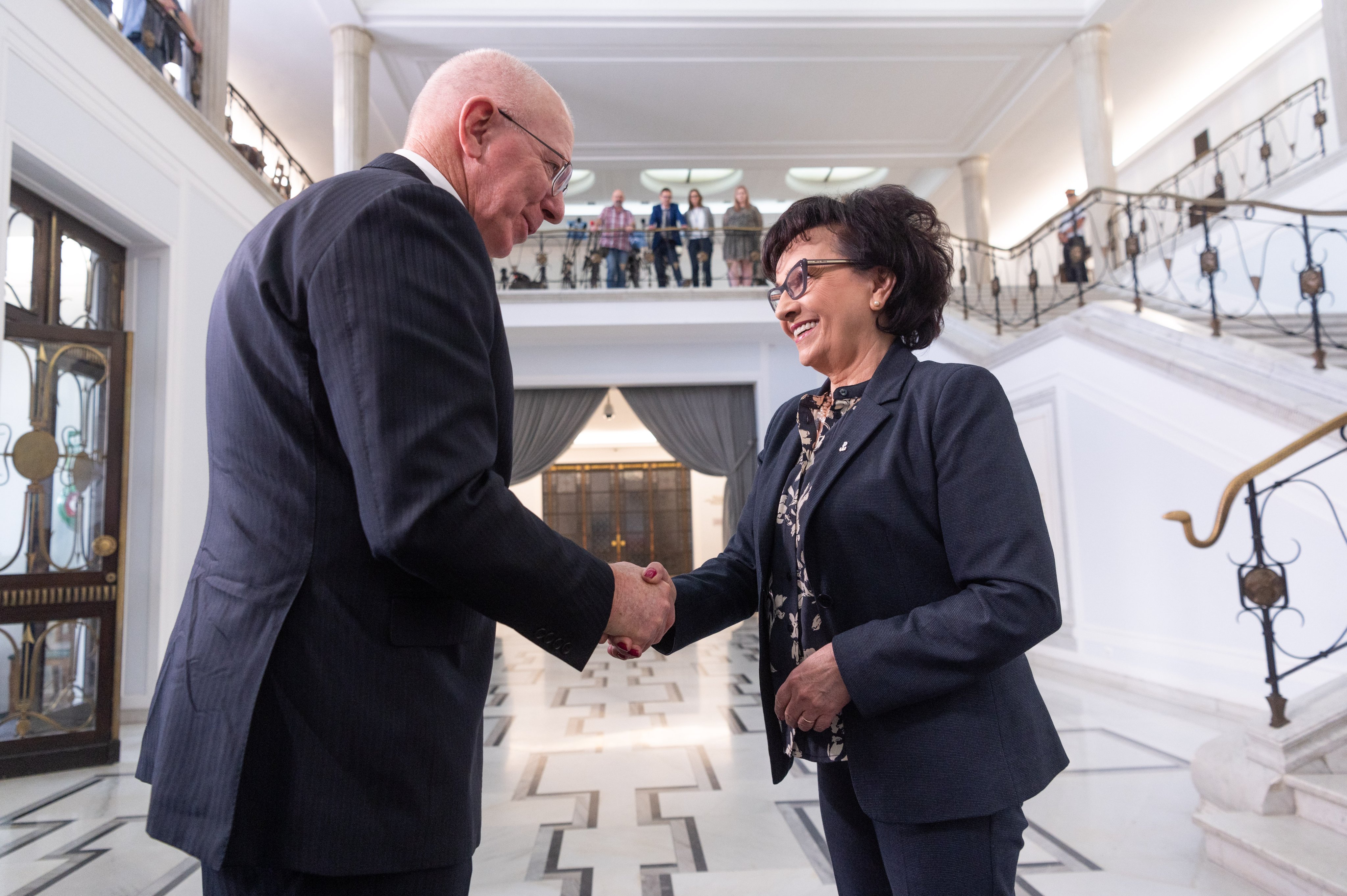 On 1 August in Warsaw he was welcomed by Polish President Andrzej Duda, Prime Minister Mateusz Morawiecki, as well as Speakers of the Sejm Elżbieta Witek and the Senate Tomasz Grodzki. Governor-General and Mrs Hurley laid a wreath at the Tomb of the Unknown Soldier in Warsaw and visited Memorial and Museum Auchwitz-Birkenau. The visit to Poland was an important part of this year’s celebrations of the 50th anniversary of Polish-Australian diplomatic relations.