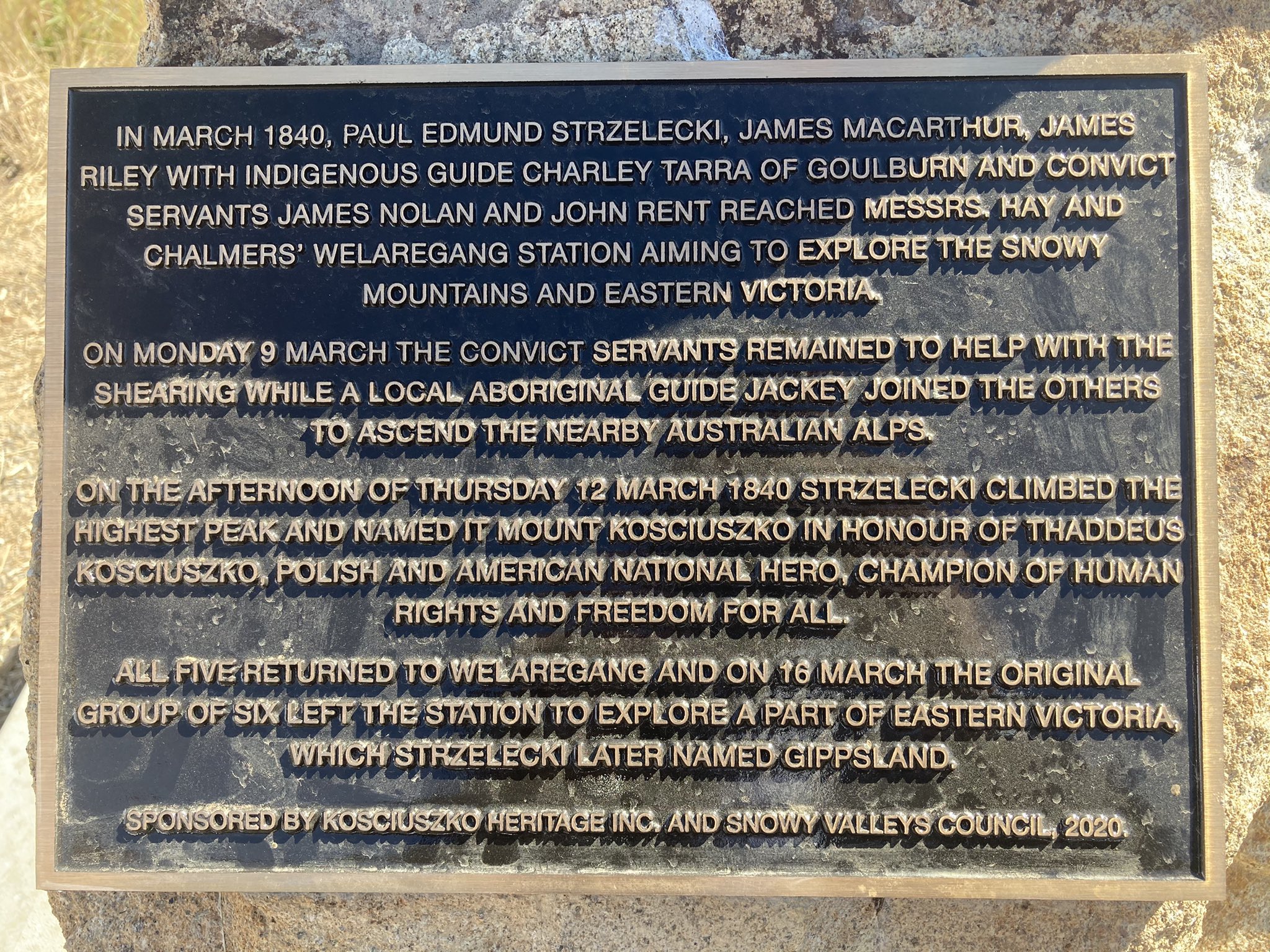 Tegoroczne uroczystości upamiętniające odkrycie i nazwanie Góry Kościuszki odbyły się w regionie Snowy Valleys. 181 lat temu, 9 marca 1840 r. z tych terenów wyruszyła ekspedycja kierowana przez Pawła Edmunda Strzeleckiego, która zaprowadziła polskiego odkrywcę na najwyższy szczyt kontynentalnej Australii.