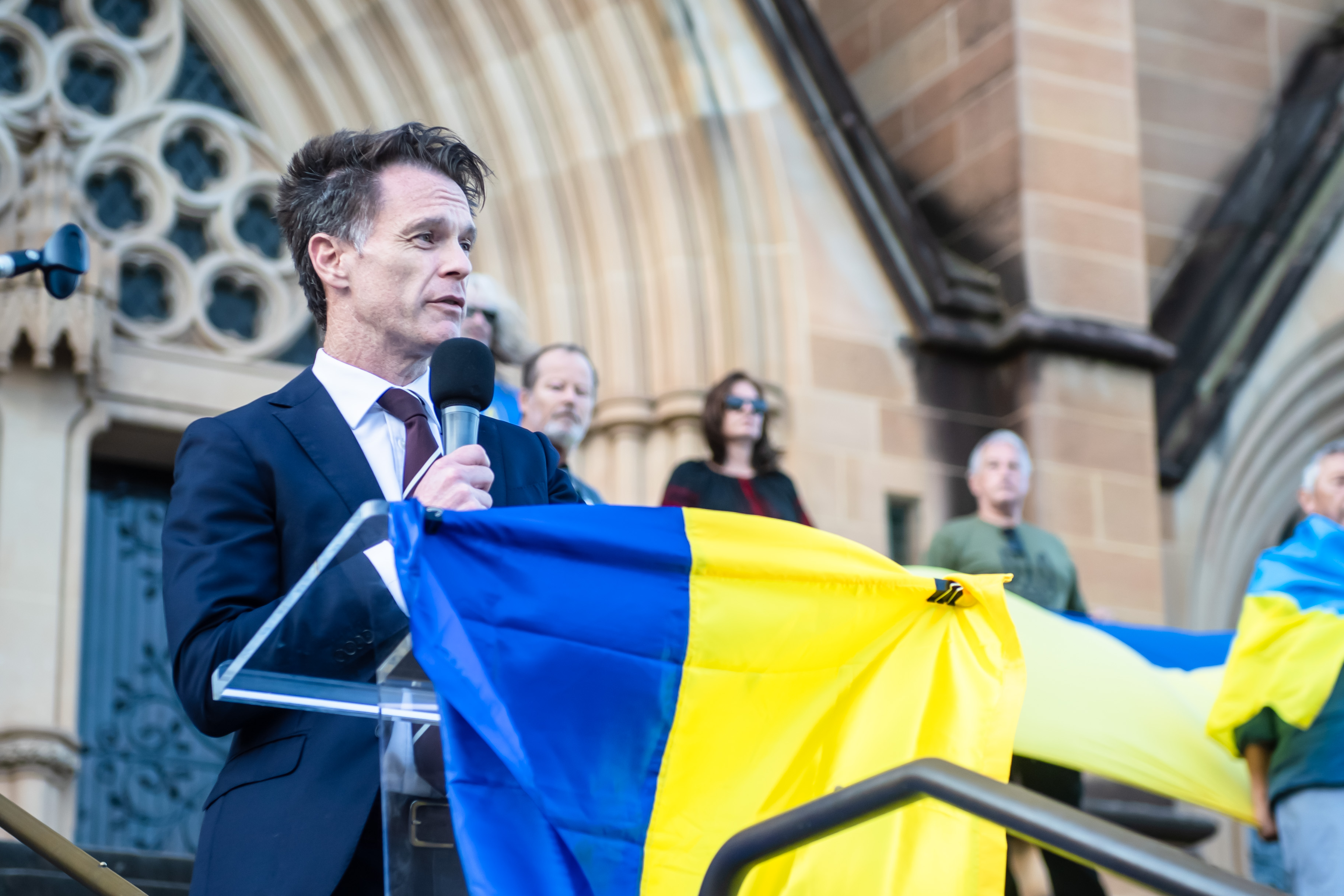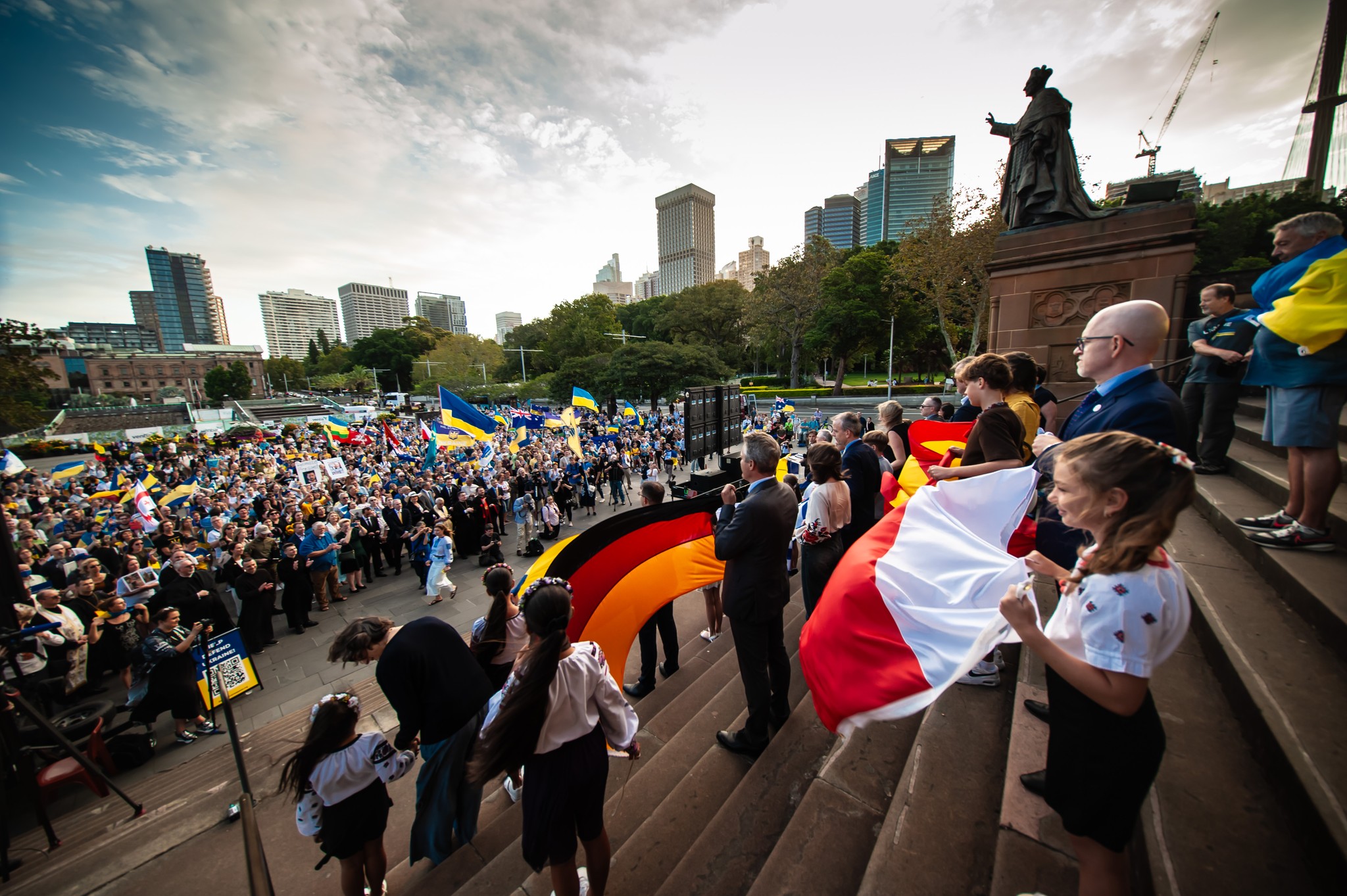 Podczas wystąpień premiera Nowej Południowej Walii Chrisa Minns, a także innych mówców, kilkakrotnie podkreślano wsparcie Australii dla walczącej Ukrainy, a także nadzieję na zakończenie wojny. Zebrani wysłuchali też ambasadora Ukrainy Vasyla Myroshnychenko, który podziękował za pomoc humanitarną i militarną udzielaną jego krajowi podczas agresji rosyjskiej .