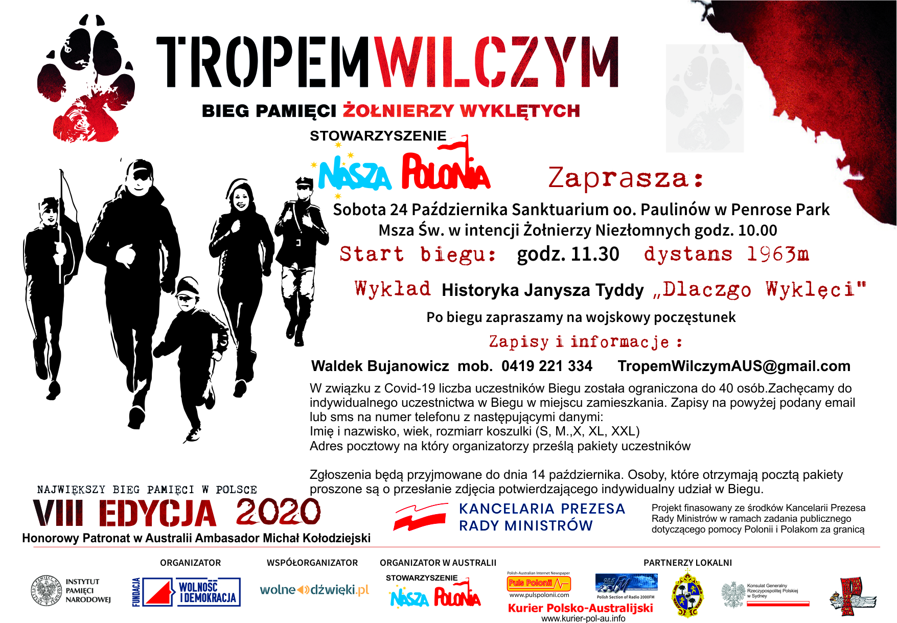 W 2020 roku Bieg Pamięci Żołnierzy Wyklętych Tropem Wilczym odbył się łącznie w 370 miastach w Polsce i za granicą. Australijską edycję biegu zorganizowały Federacja Organizacji Polskich w Nowej Południowej Walii oraz Stowarzyszenie Nasza Polonia.