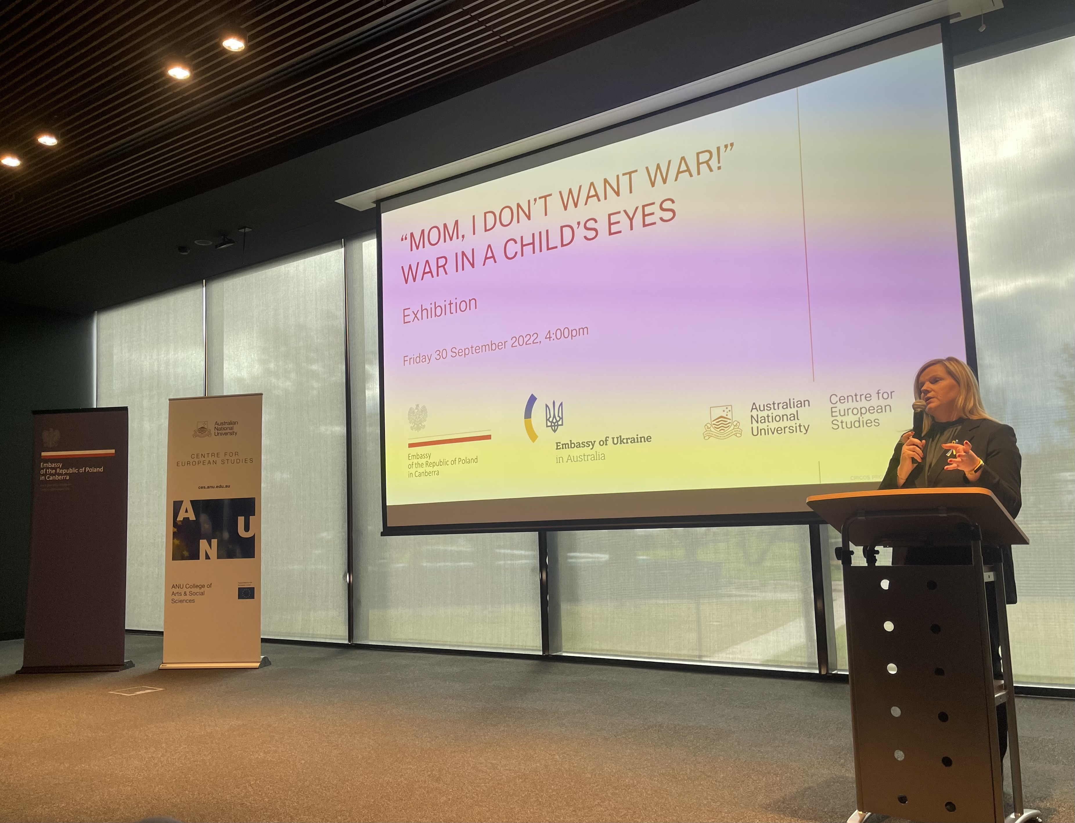 Inauguracja w Canberze wystawy rysunków prezentujących doświadczenia dzieci polskich z czasu II wojny światowej oraz dzieci ukraińskich w związku z obecną agresją Rosji na Ukrainę miała miejsce 30 września na Australijskim Uniwersytecie Narodowym (ANU).