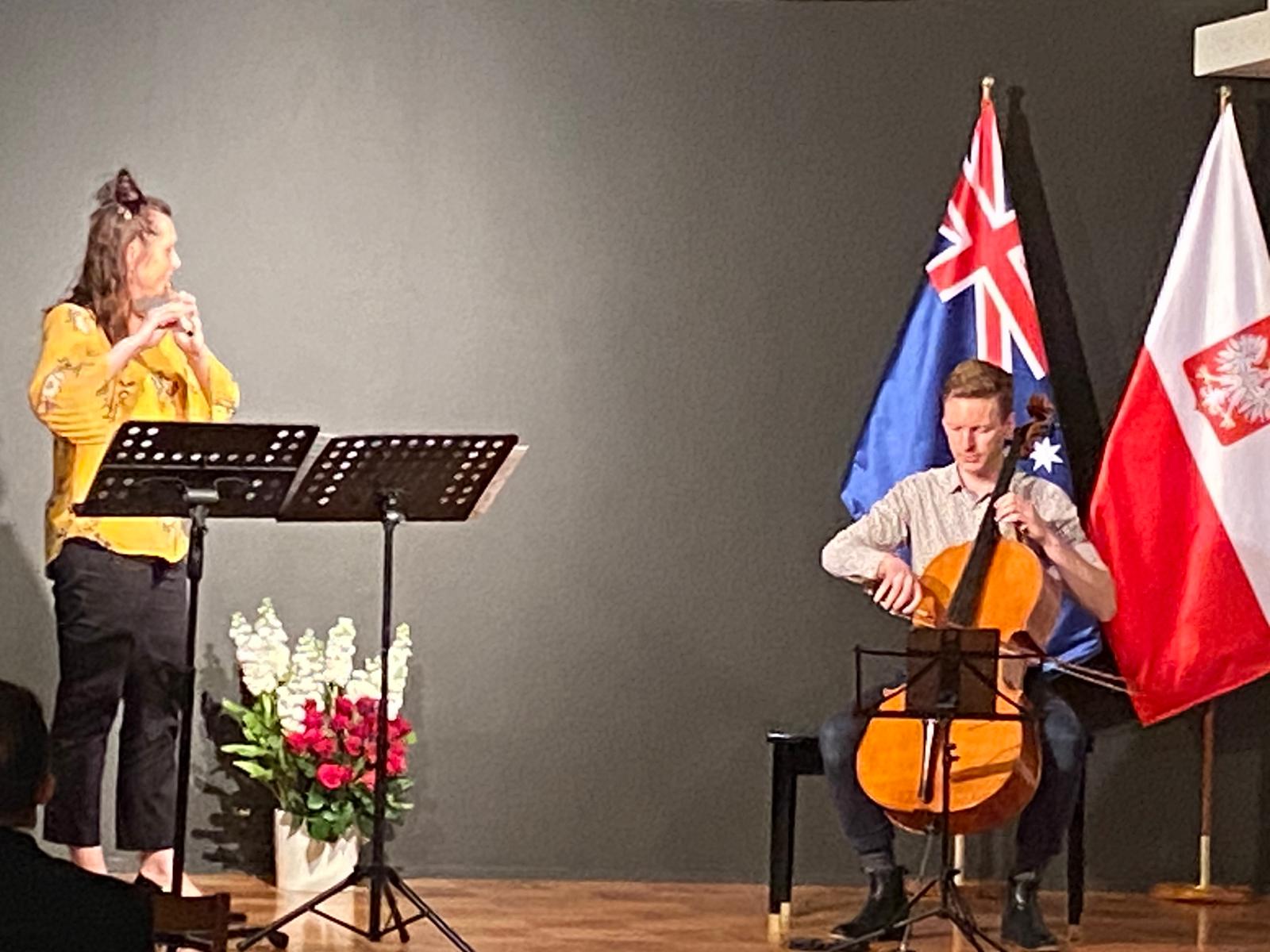 Z tej okazji odbył sie w Konsulacie Generalnym RP w Sydney koncert fletowo-wiolenczelowy w wykonaniu duetu polsko-australijskiego: Ewa Kowalski- flet i James Larsen - wiolonczela.