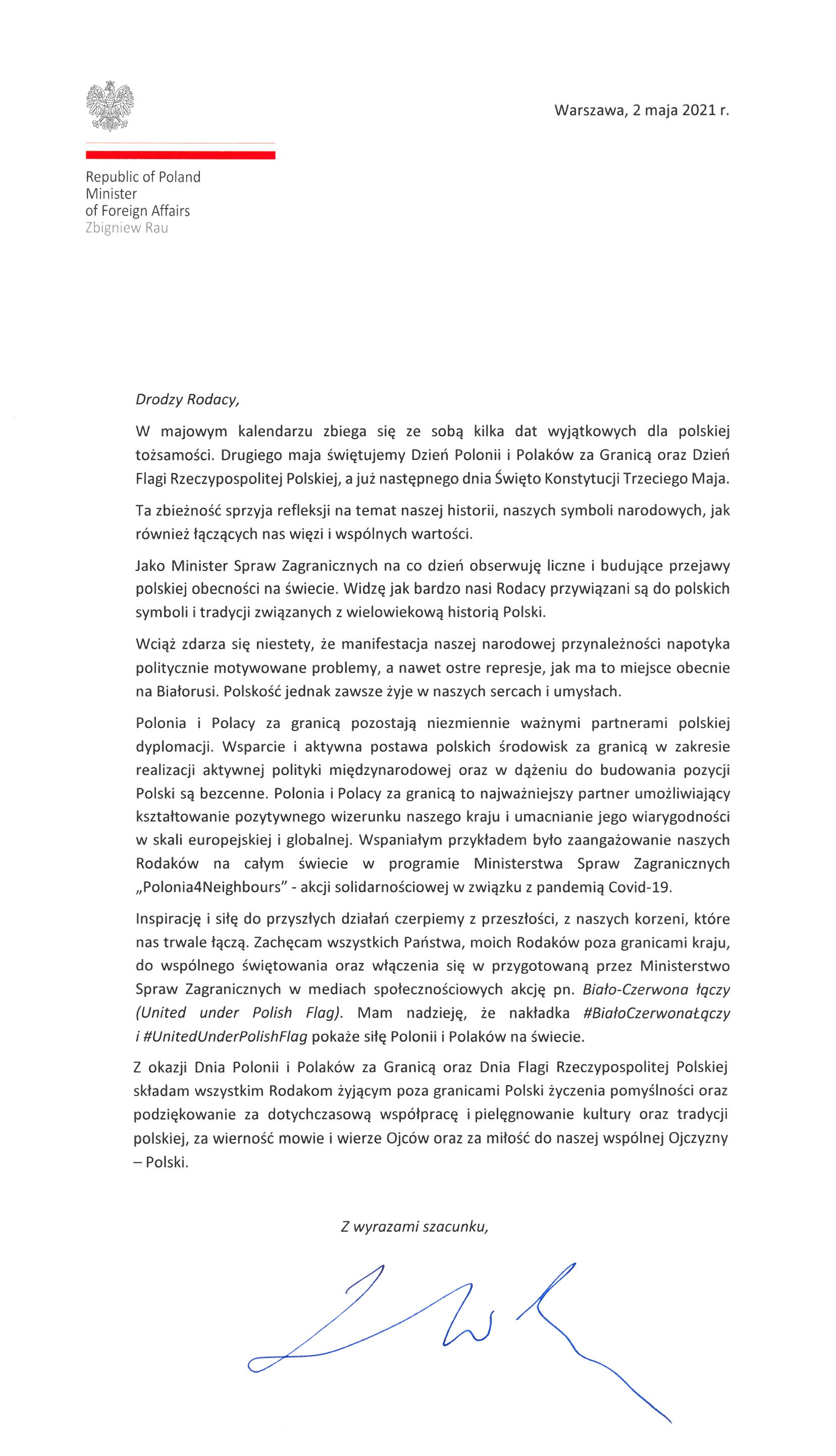 List od Ministra Spraw Zagranicznych z okazji Dnia Polonii i Polaków za granicąList od Ministra Spraw Zagranicznych z okazji Dnia Polonii i Polaków za granicą.png 1.14MB