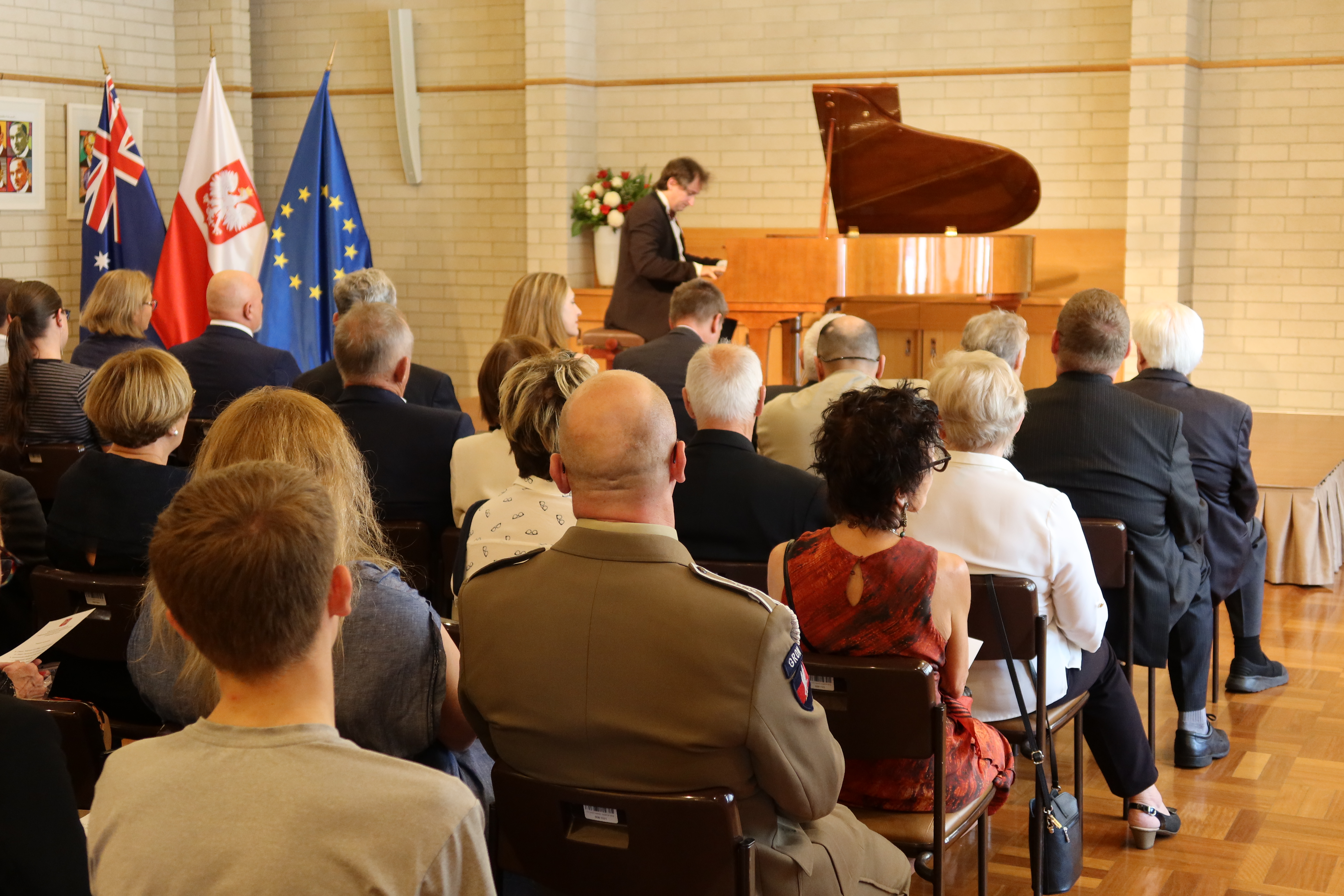 Uroczystość z okazji 105. rocznicy odzyskania przez Polskę Niepodległości odbyła się 11 listopada w Ambasadzie RP w Canberze. Wydarzenie rozpoczęło się o godz. 12:00 wspólnym odśpiewaniem Hymnu Państwowego w ramach akcji „Niepodległa do Hymnu”.
