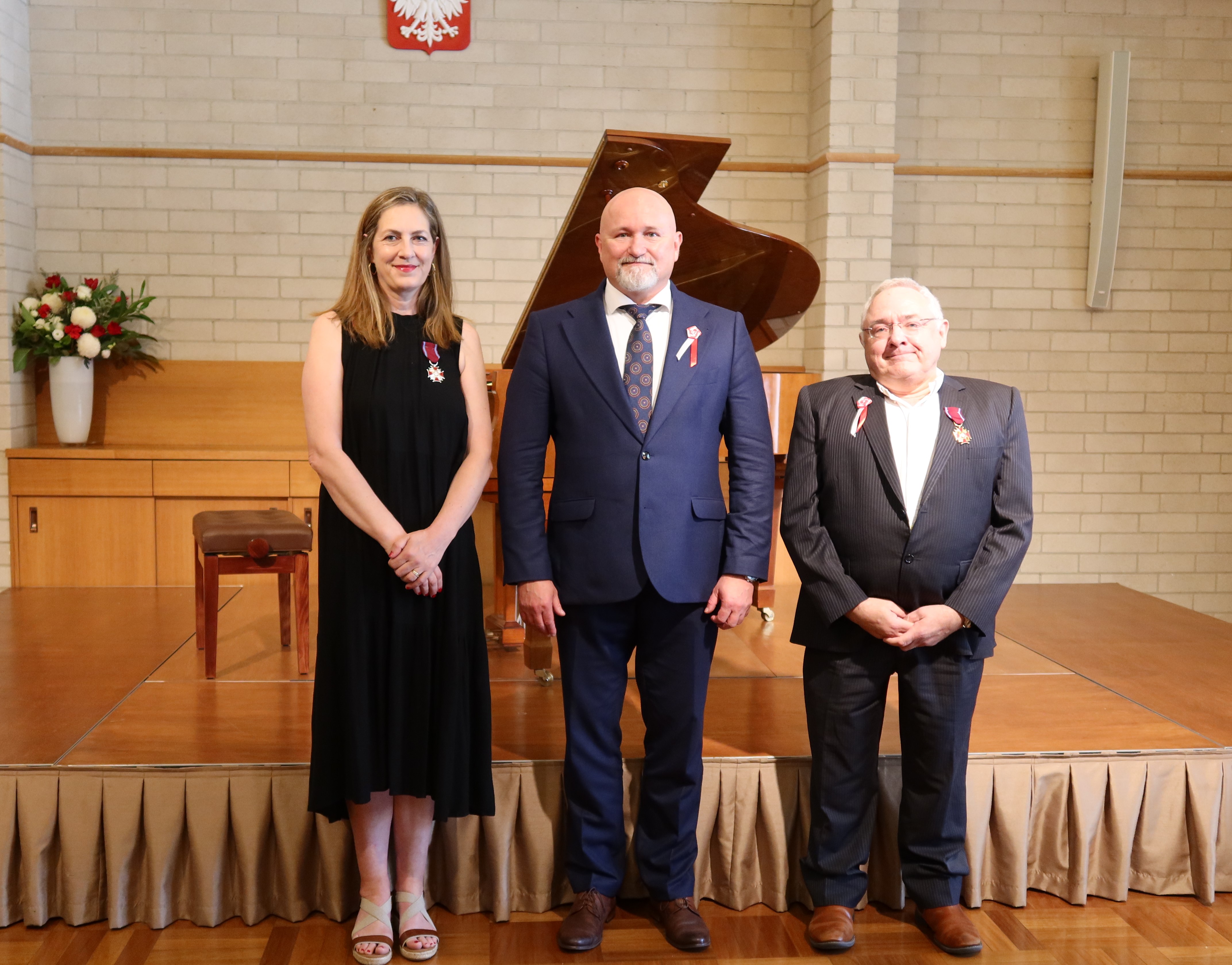 Ambasador Maciej Chmieliński wręczył podczas uroczystości odznaczenia państwowe nadane przez Prezydenta RP Andrzej Dudę zasłużonym działaczom polonijnym: