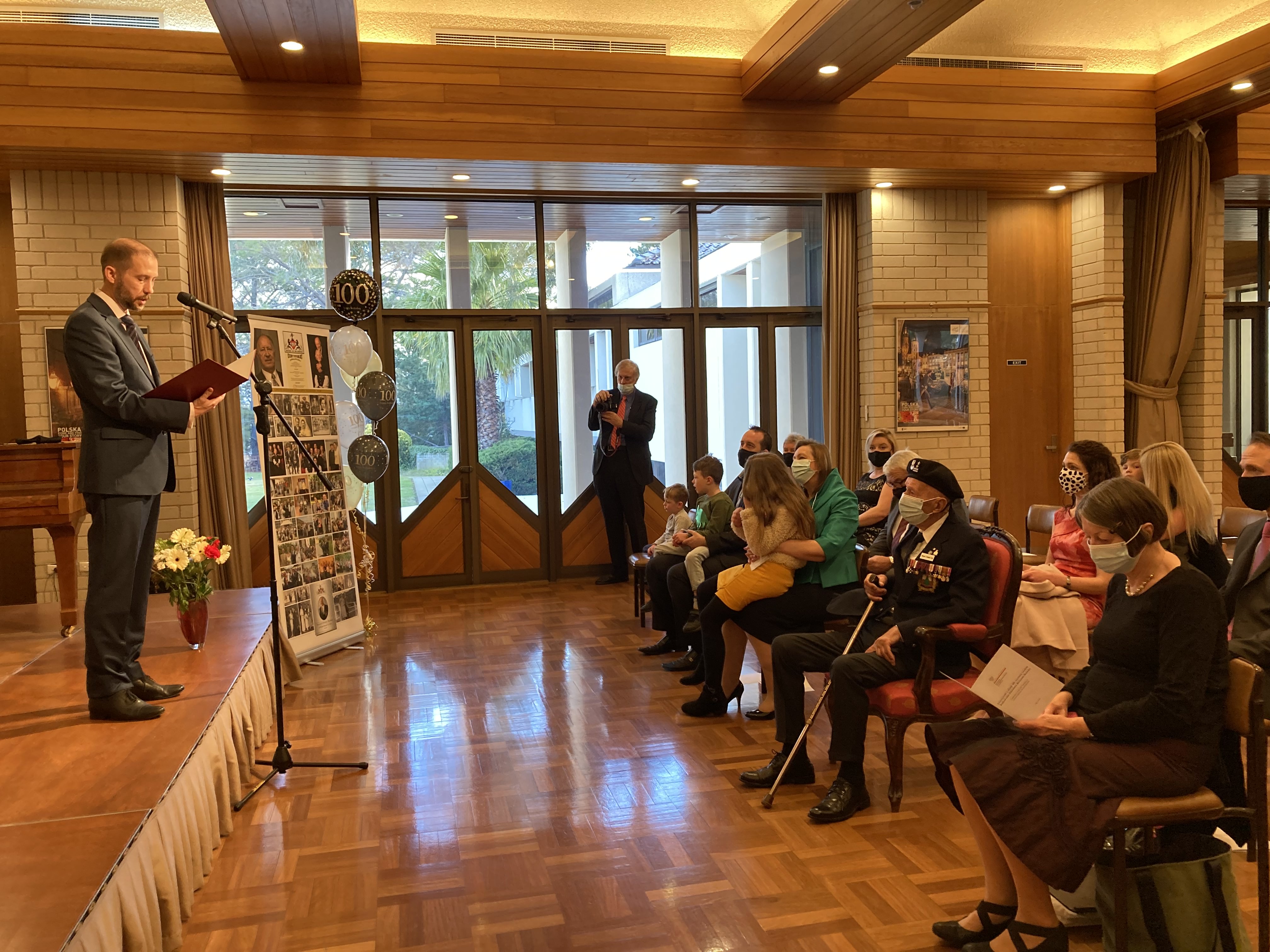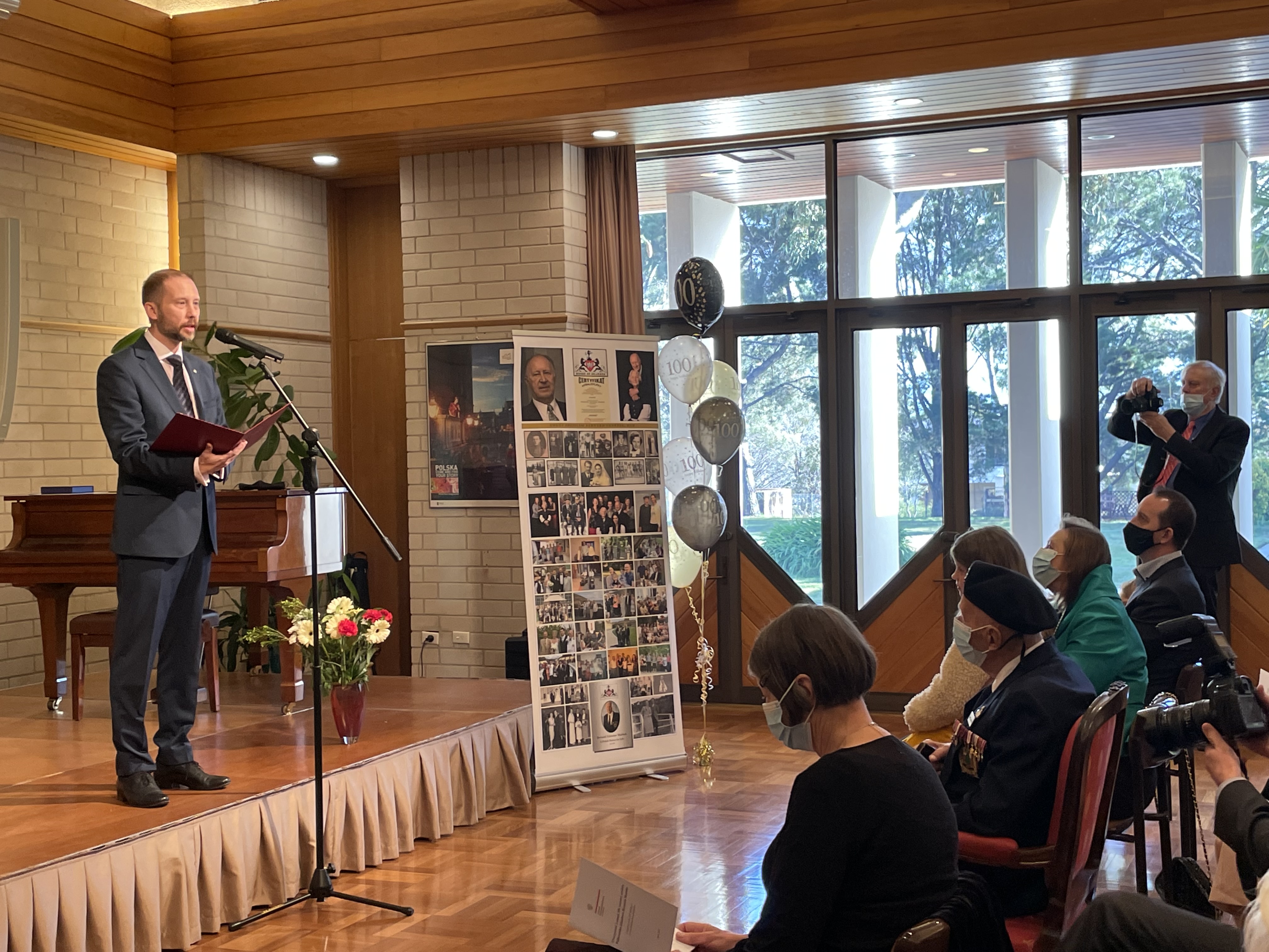Uroczyste obchody urodzin polskiego weterana walk o Monte Cassino i zasłużonego działacza polonijnego miały miejsce 3 lipca 2021 r. w Ambasadzie RP w Canberze. W obecności Jubilata, jego rodziny oraz przedstawicieli Rady Organizacji Polonijnych w Australijskim Terytorium Stołecznym Ambasador Michał Kołodziejski odczytał okolicznościowy list Prezydenta RP Andrzeja Dudy. Przekazane zostały także życzenia dyrektora Muzeum II Wojny Światowej w Gdańsku dr. Karola Nawrockiego oraz liczne gratulacje od naszych Rodaków z Polski i całego świata.