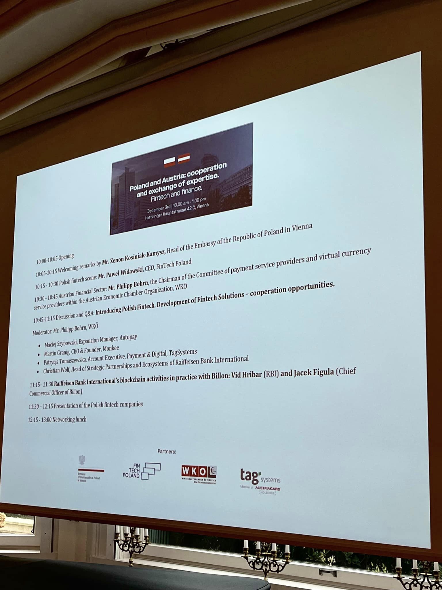 03.12. w Ambasadzie RP w Wiedniu odbyła się konferencja pt. „Poland and Austria: cooperation and exchange of expertise. Fintech and finance”. Spotkanie zgromadziło ekspertów z obu krajów, którzy omówili kluczowe zagadnienia związane z rozwojem sektora fintech w Polsce oraz specyfiką austriackiego rynku finansowego.