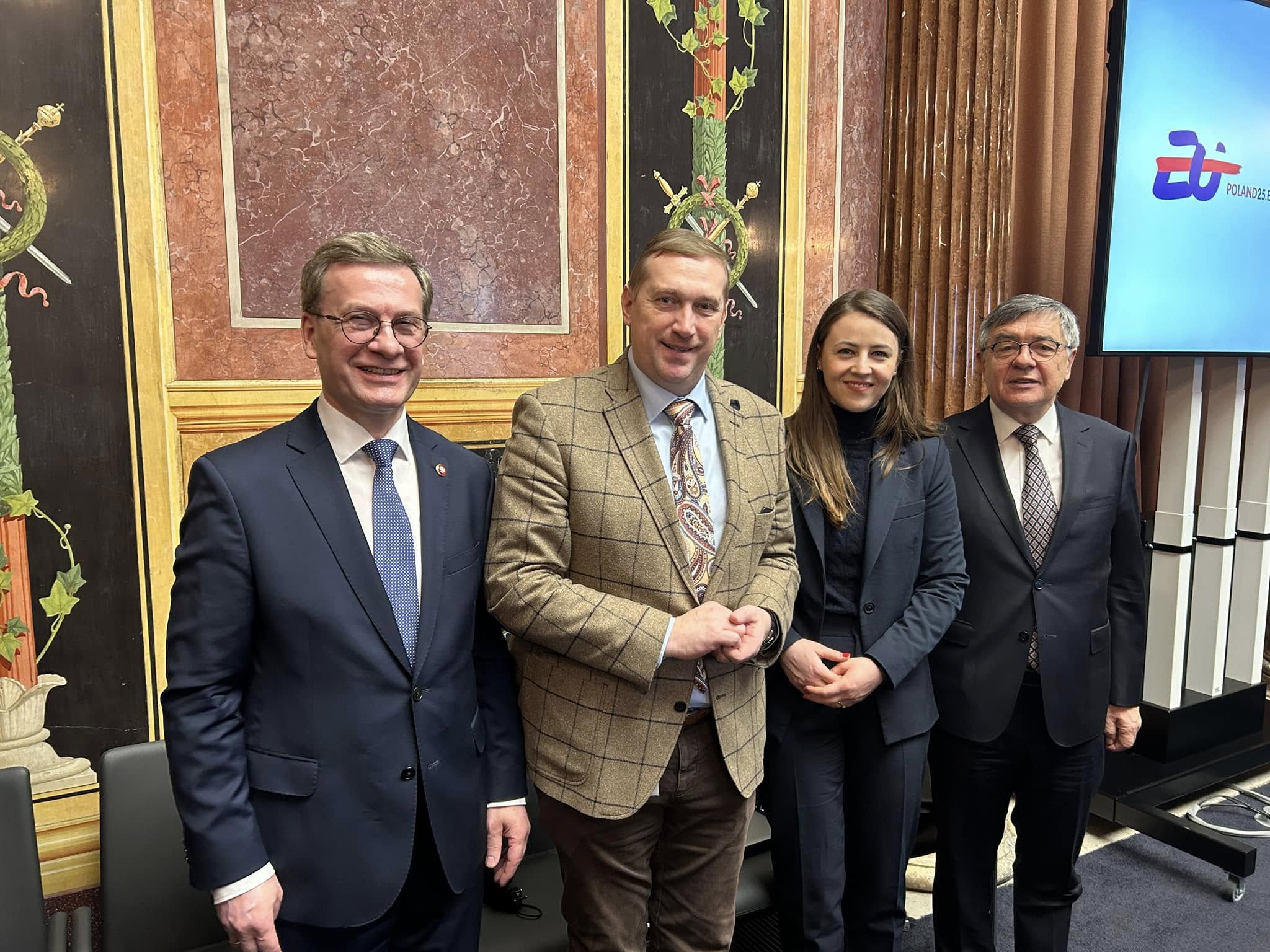 Podczas regularnego posiedzenia Komisji ds. Unii Europejskiej Bundesratu Republiki Austrii w środę 29 stycznia, któremu przewodniczyła Bernadetta Geieregger (ÖVP), szef misji dyplomatycznej Zenon Kosiniak-Kamysz przedstawił priorytety polskiej prezydencji w Radzie Unii Europejskiej. Austriaccy politycy wysłuchali informacji nt. siedmiu wymiarów bezpieczeństwa: zewnętrznego, wewnętrznego, informacyjnego, energetycznego, ekonomicznego, żywnościowego i zdrowotnego. Zenon Kosiniak-Kamysz podkreślił, że Polska postrzega rządy prawa jako drogowskaz i filar stabilności oraz wzajemnego zaufania w Unii. Naszym celem będzie utrzymanie standardów praworządności, wzmocnienie odporności demokracji i promowanie przywiązania do unijnych wartości. Poszanowanie podstawowych praw i wolności, na których opiera się UE, związane jest z bezpieczeństwem, które wobec aktualnych wyzwań wymaga wzmocnienia jedności europejskiej i solidarności. W blisko dwugodzinnym spotkaniu przedstawiciele austriackich partii ÖVP, FPÖ, SPÖ, Zieloni, Neos zainteresowani byli m.in. kwestiami współpracy na rzecz pokoju, zielonej energii, edukacją i polityką społeczną.