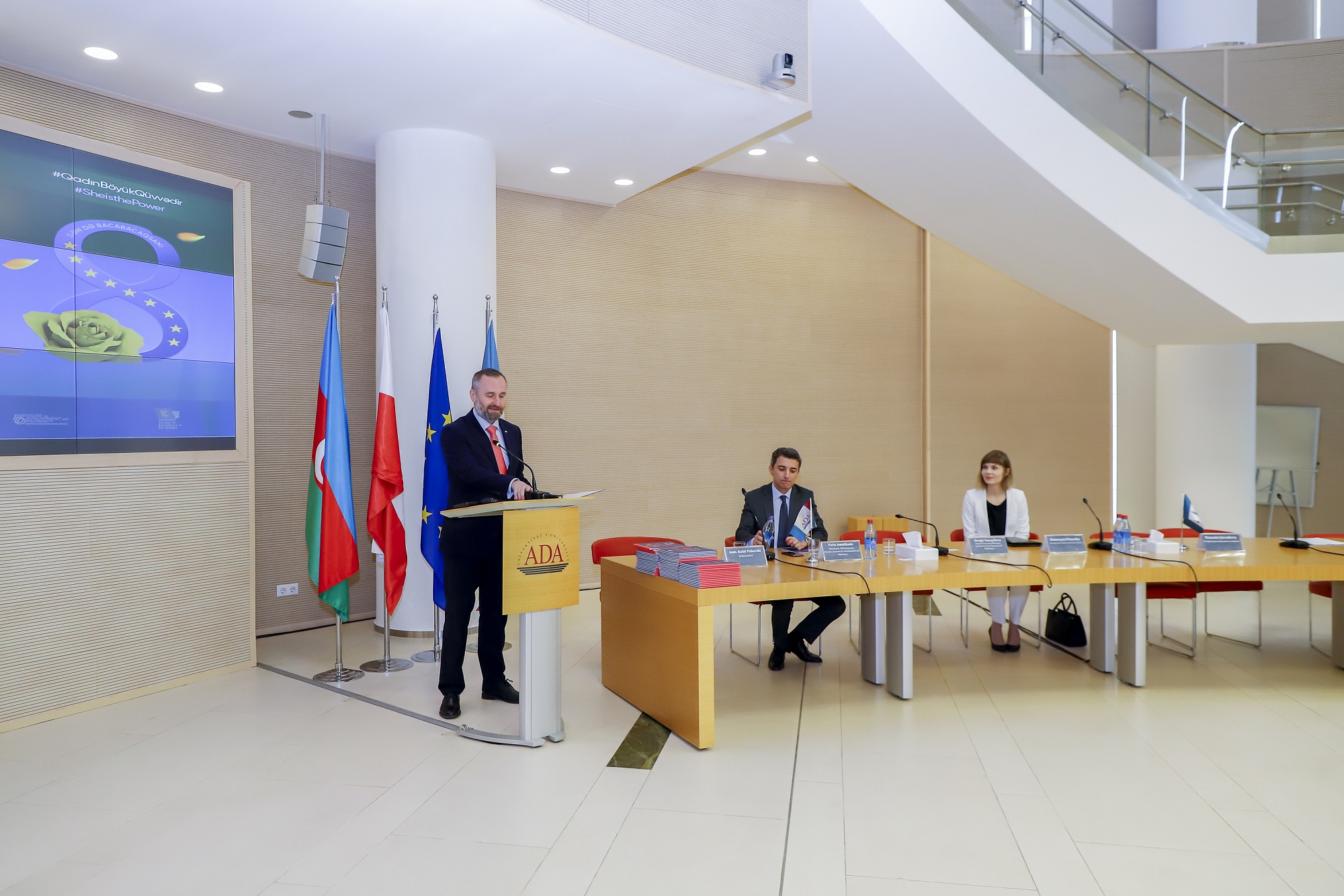 7 mart 2023-cü il tarixində ADA Universitetində Səfir Rafal Poborski və ADA Universitetin prorektoru Fariz İsmayılzadə “Görkəmli Polşa Qadınları” adlı sərgini açdılar. Layihə Avropa İttifaqı tərəfindən həyata keçirilən sosial kampaniyanın bir hissəsi idi. Sərgidə əsaslı elmi kəşflər etmiş, ədəbiyyat və təsviri incəsənət sahəsində görkəmli nailiyyətləri ilə öyünə bilən, eləcə də ənənəvi olaraq kişilərin sahəsi hesab olunan (siyasət, ekstremal idman növləri) sahələrdədə uğur qazanmış qadınlarımızın nailiyyətlərini əks etdirən genişşəkilli formatda 11 lövhə təqdim olundu.