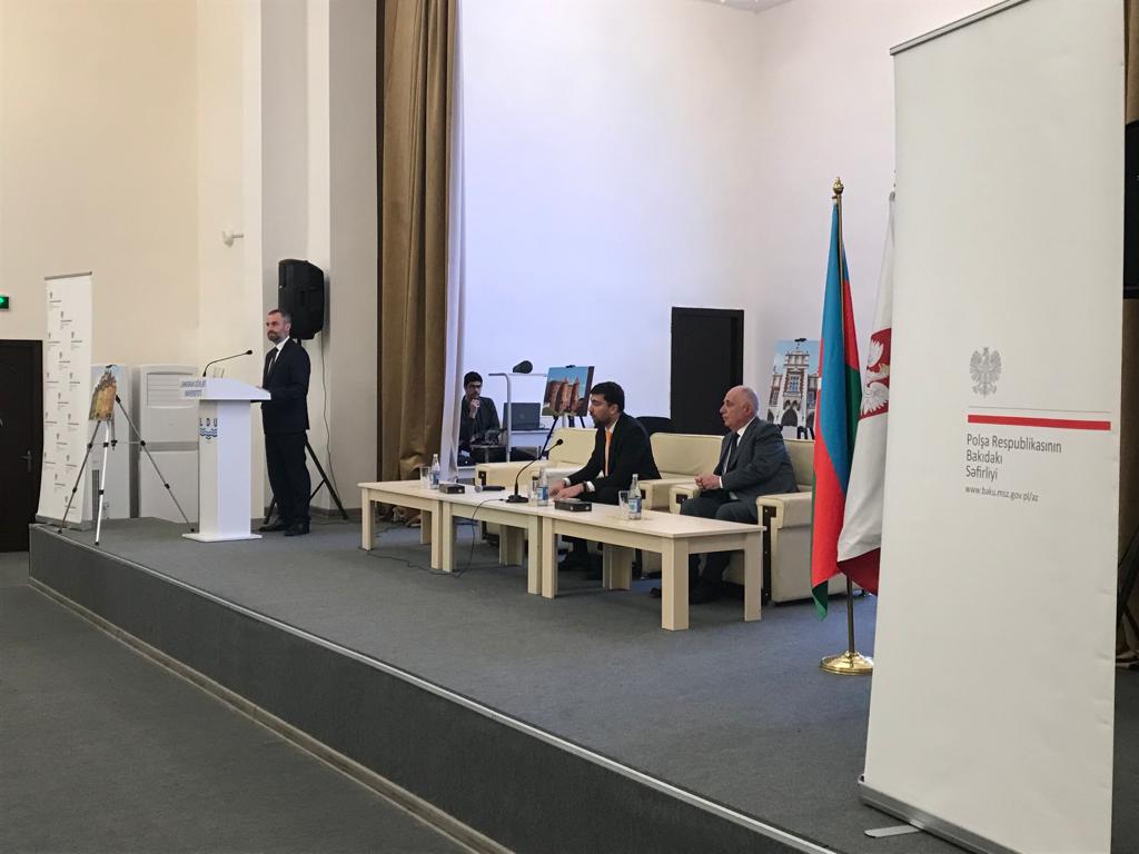 Sərginin açılışı ilə bağlı Rektor Natiq İbrahimov və Polşa Respublikasının Səfiri Rafal Poborski çıxış ediblər. Rektor çıxışında Polşanın Avropadakı mühüm roluna və Polşa-Azərbaycan əlaqələrinin çoxəsrlik tarixinə diqqət çəkib. O, həmçinin Polyakların Azərbaycan üçün xidmətlərini (o cümlədən XIX-XX əsrlərdə Azərbaycanın neft-qaz sektorunun inkişafına töhfə vermiş soydaşlarımızı) xatırladıb. Polşa Respublikası Səfirinin çıxışında İkinci Dünya Müharibəsi illərində Polşada memarlıq irsinin Almanlar tərəfindən məhv edilməsi məsələsi qaldırılıb. Səfir Polşalı memarların və abidə konservatorlarının abidələrin yenidən qurulması ilə bağlı təcrübələrini Azərbaycanla bölüşmək imkanlarına da diqqət çəkib.