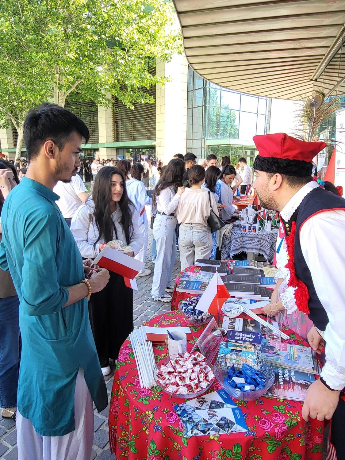 Polşa Respublikasının Səfirliyi Polşanın tanıtım stendini təqdim etdi, burada qonaqlar Polşa tarixi və mədəniyyətinə dair kitablar və broşurlar, həmçinin Polşa-Azərbaycan münasibətlərinə dair materiallar, o cümlədən: Azərbaycanda neft-qaz sənayesinin inkişafında fərqlənmiş polşalı geoloq və ixtiraçı Vitold Zqlenitskinin (1850-1904) həyat və nailiyyətlərindən bəhs edən, bu yaxınlarda Səfirliyimiz tərəfindən nəşr olunmuş kitablar verildi. Polşa stendində həmçinin Polşa universitetlərinin: Yaqellon Universiteti, Qdansk Universiteti, Sileziya Texnologiya Universiteti və Krakov Texnologiya Universitetinin təhsil təklifi ilə bağlı materialları paylanmışdır. Polşa Respublikasına təhsil məqsədi ilə getmək istəyən şəxslər Polşa ali təhsil sistemi və viza məsələləri ilə bağlı suallarını vermək imkanı əldə etdilər. Polşa stendində polyak şirniyyatları da təklif olundu. Polşanın təbliği çərçivəsində Beynəlxalq Gün ərzində Səfirliyin sponsorluğu ilə hədiyyəli Polşa haqqında bilik yarışması keçirilmişdir.