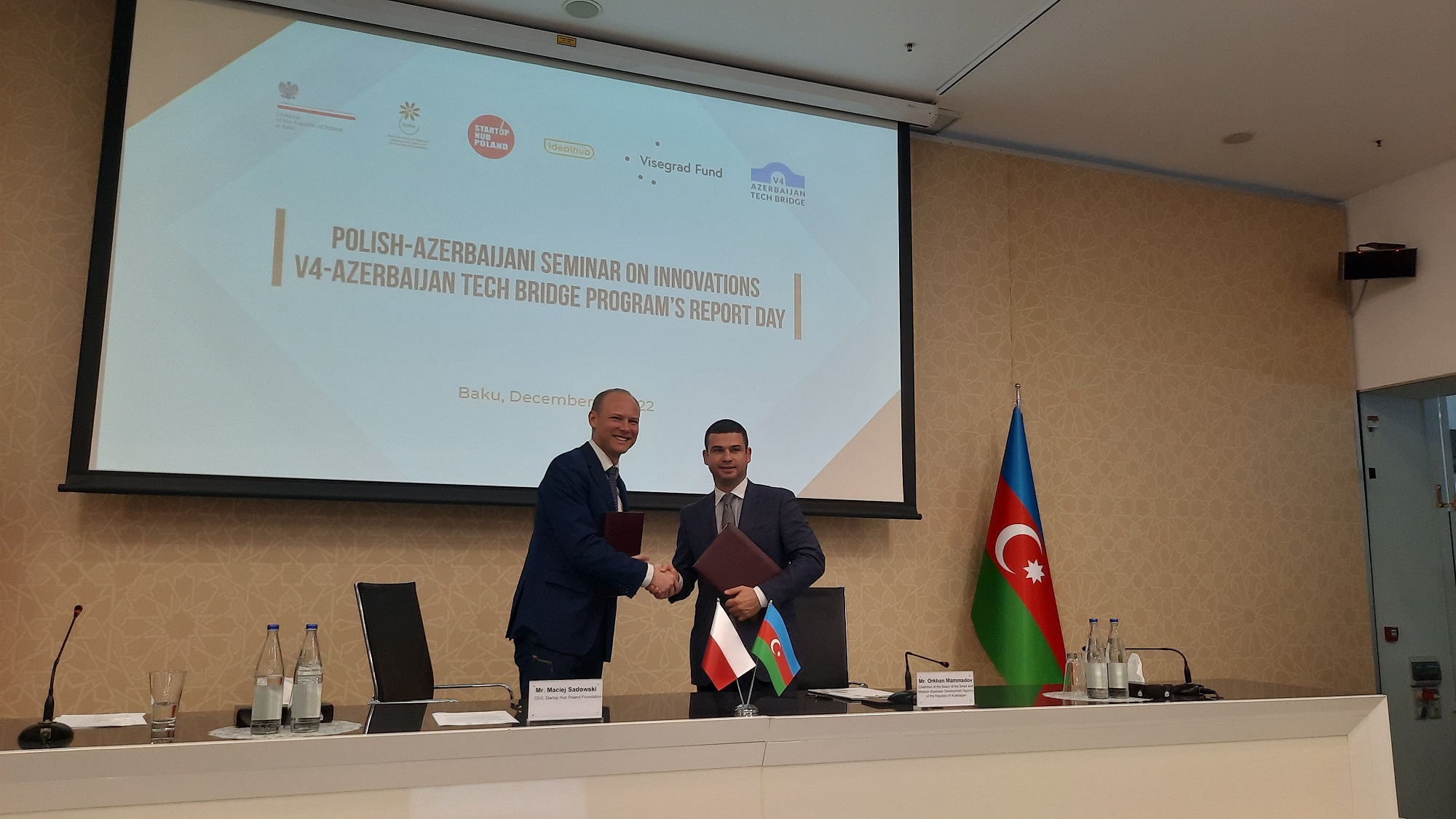 16 grudnia 2022 r. w Baku odbyło się polsko-azerbejdżańskie forum poświęcone innowacjom i inwestycjom w startupy, współorganizowane przez Ambasadę RP w Baku, Agencję Rozwoju Małych i Średnich Przedsiębiorstw Azerbejdżanu, Fundację Startup Hub Poland oraz Centrum Innowacji i Technologii IdealHub.