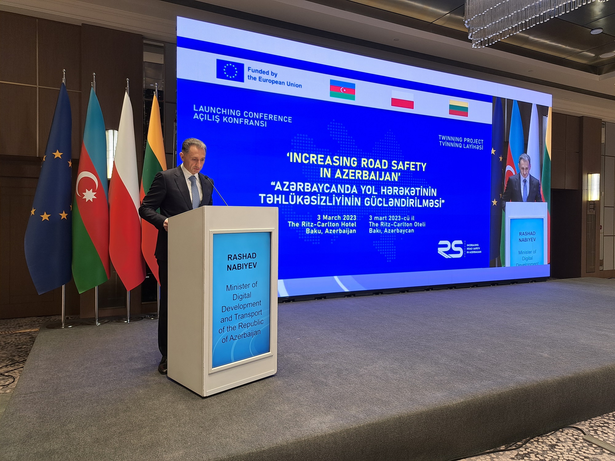 Twinning "Increasing road safety in Azerbaijan" jest finansowany przez Unię Europejską. Czas trwania projektu 24 miesiące. Impreza inaugurująca projekt została zorganizowana we współpracy z Krajem Beneficjenta, Ministerstwem Rozwoju Cyfrowego i Transportu Azerbejdżanu.