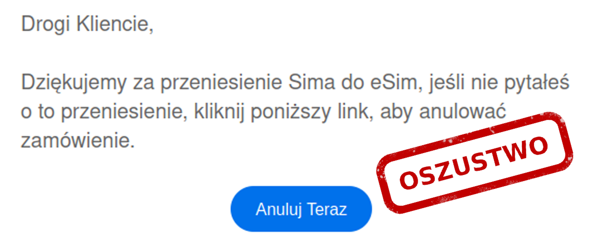 Uważaj! Taka wiadomość to próba oszustwa!