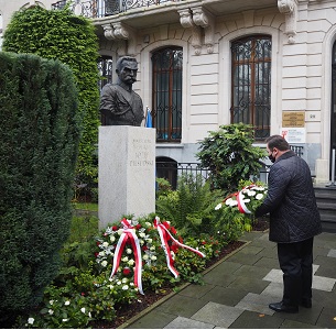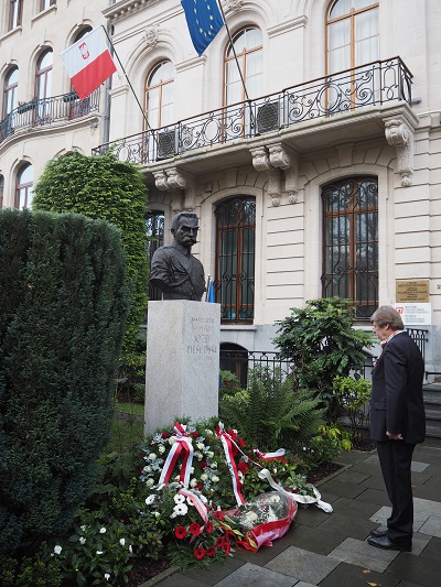 Z okazji obchodów Święta Niepodległości przedstawiciele Ambasady RP w Brukseli, przedstawicielstw dyplomatycznych i organizacji polonijnych złożyli kwiaty pod pomnikiem Marszałka Józefa Piłsudskiego.