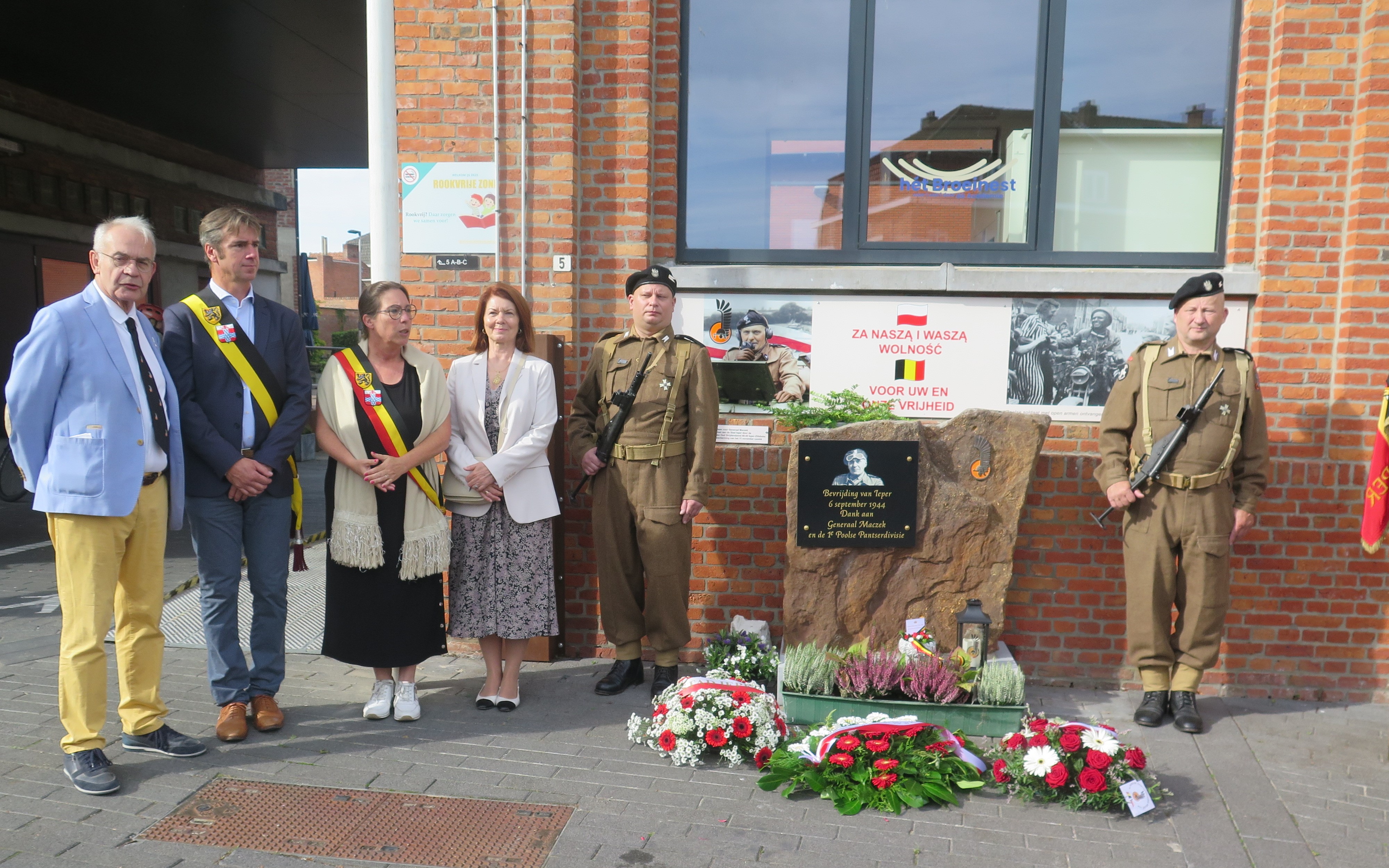 In Ieper, the liberation of the city by General Maczek’s 1st Polish Armoured Division was commemorated at the plaque on the town hall and at the monument dedicated to General Stanisław Maczek on Polenlaan.