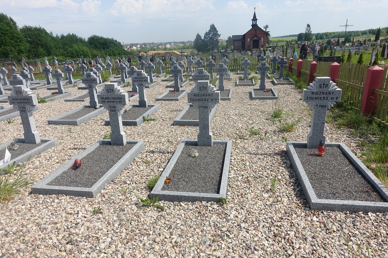 Spoczywają na niej zarówno żołnierze polegli w trakcie walk, jak i też ranni i chorzy zmarli w stacjonującym w Dokszycach szpitalu polowym.