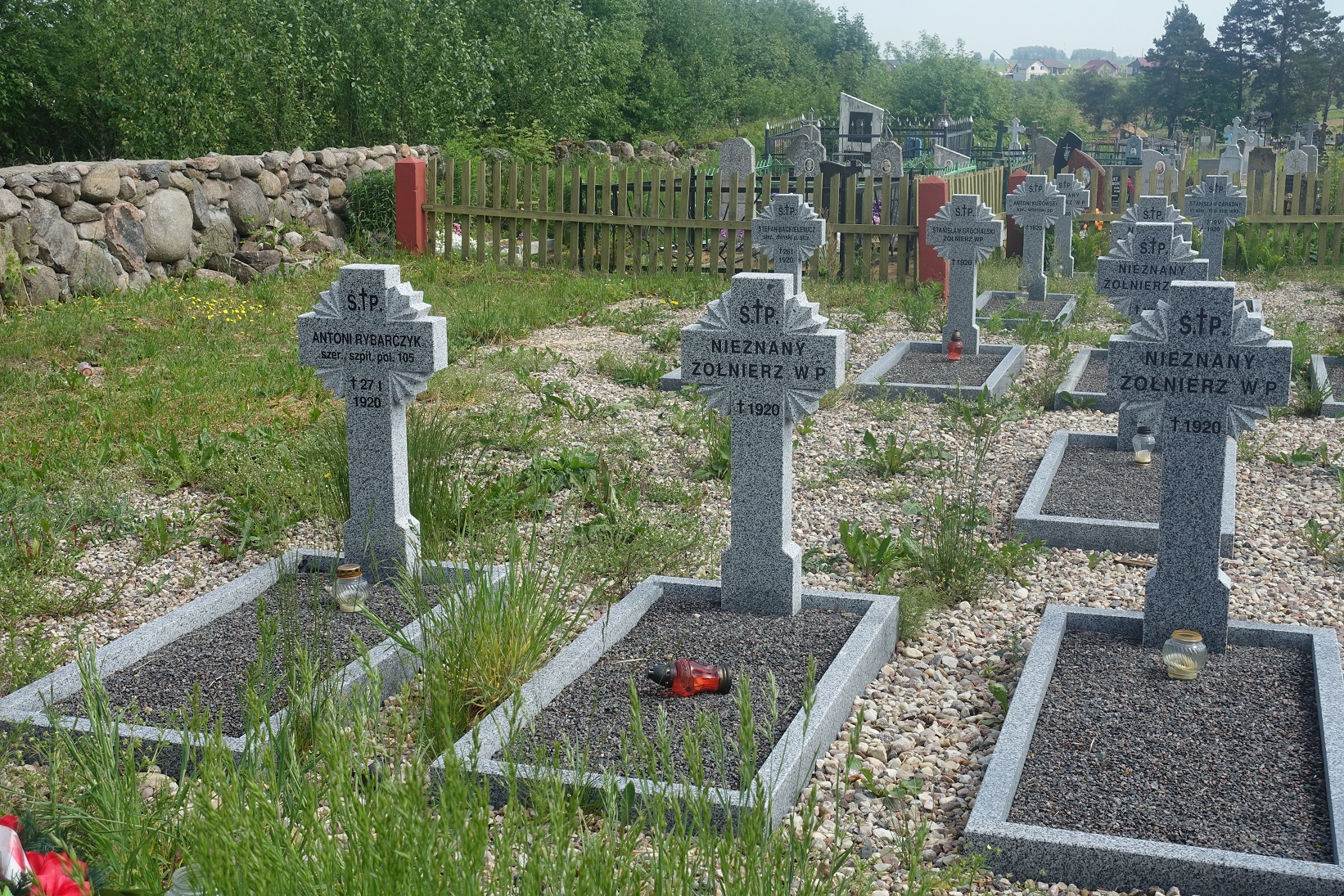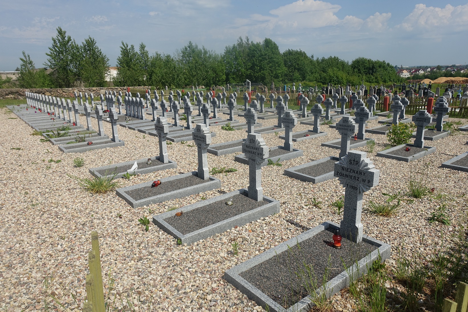 Betonowe krzyże oraz nagrobki zostały wykonane przez Ministerstwo Robót Publicznych na przełomie lat 20 i 30 XX w. W centralnej części cmentarza znajduje się pomnik wzniesiony przez mieszkańców w dziesiątą rocznicę odparcia najazdu bolszewickiego.