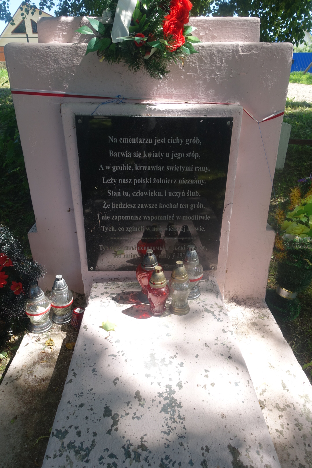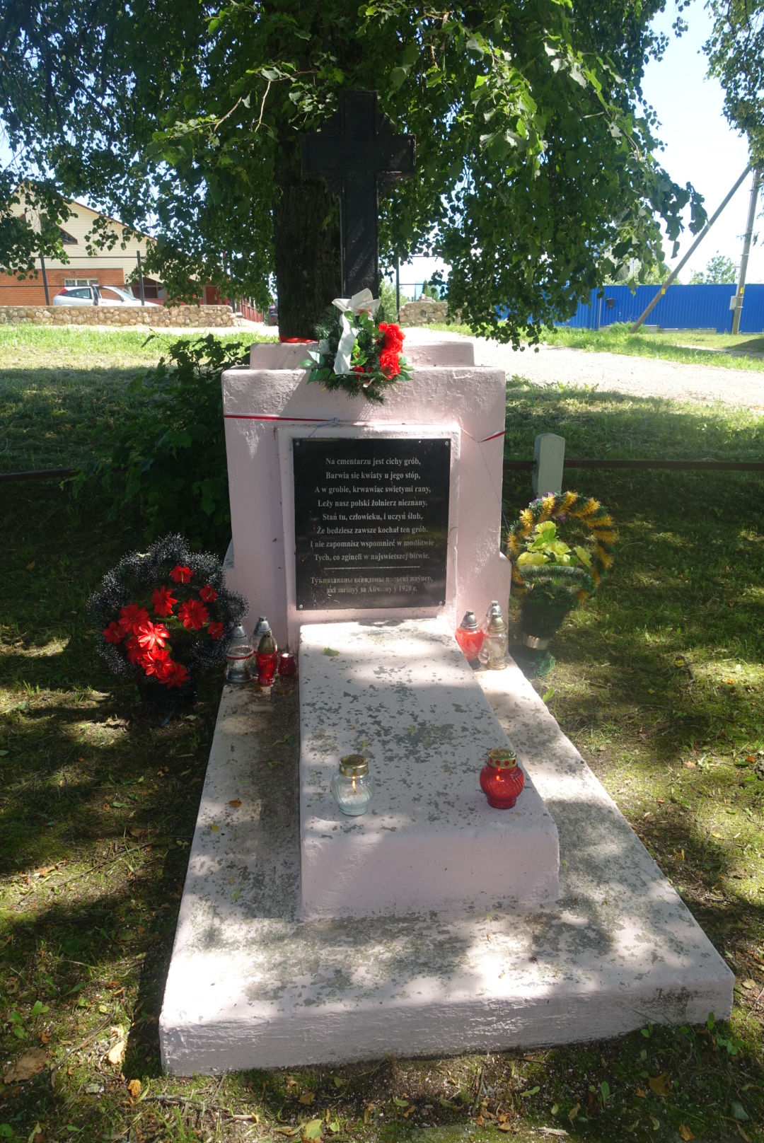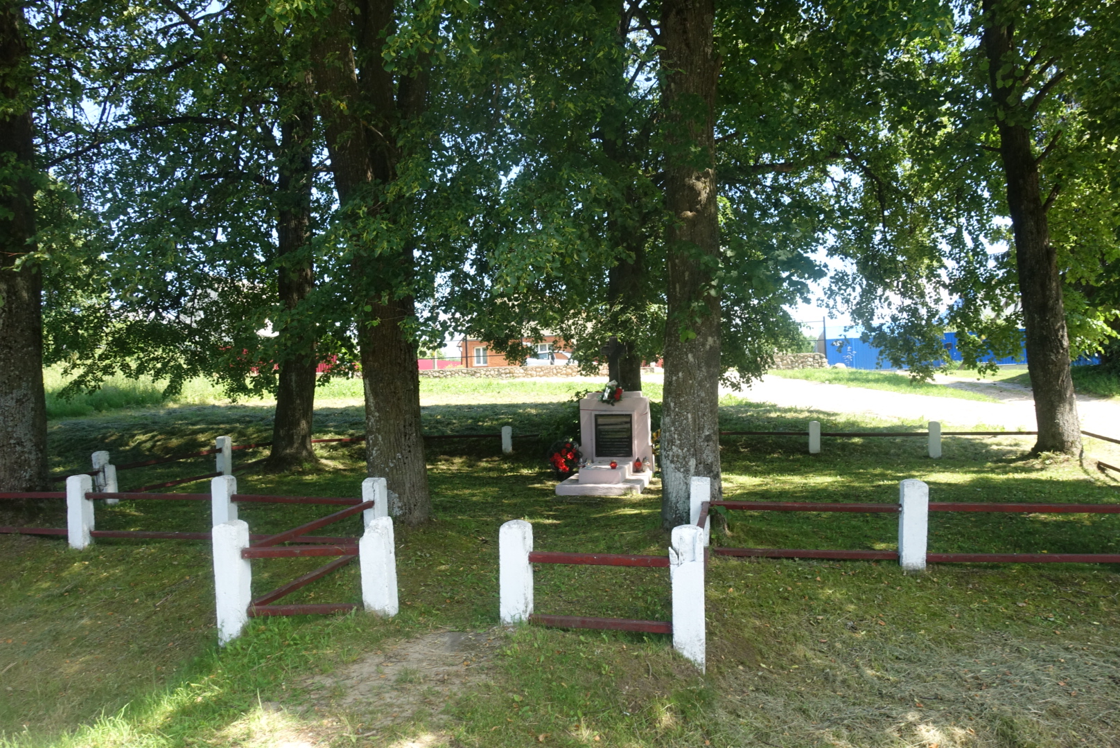 Rejon miadziolski. Pojedyncza kwatera z niezanym żołnierzem poległym w 1920 r. znajduje się na obrzeżach wsi po prawej stronie ulicy Pionierskiej .