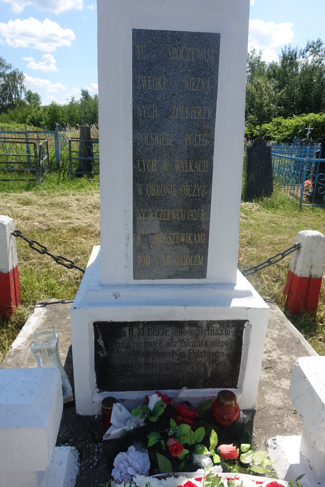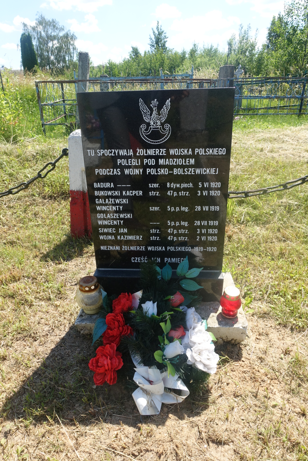 Groby wykonane na przełomie lat 20 i 30 XX w. Dodatkowo w 1933 r. z okazji 15 rocznicy odzyskania niepodległości społeczność Miadzioła ufundowała pomnik poświęcony żołnierzom poległym w obronie ojczyzny.