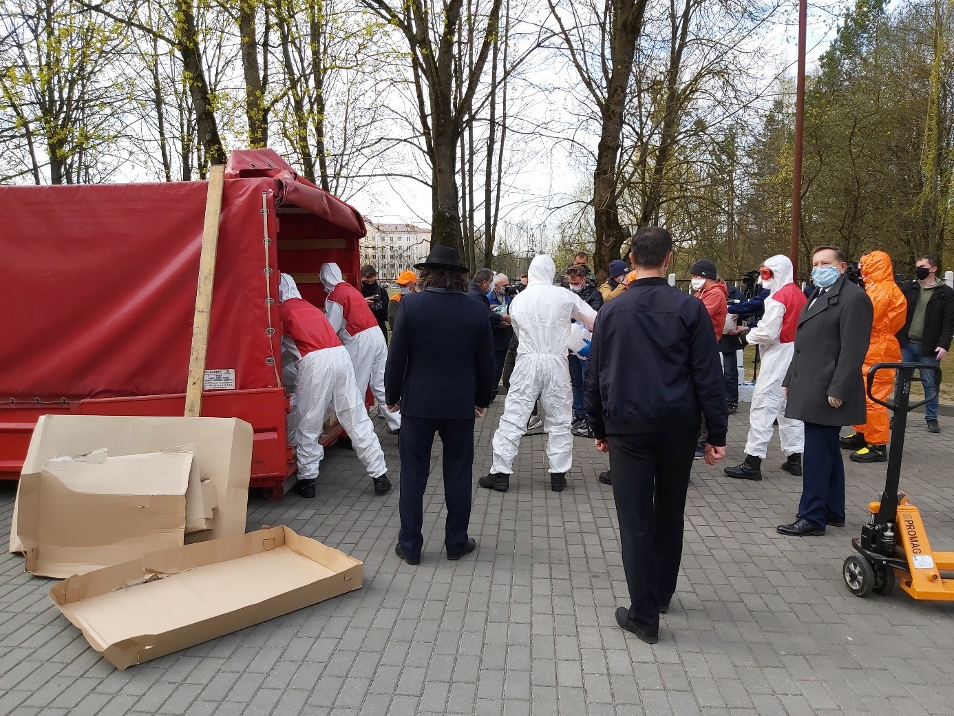 Pierwszy rozładunek miał miejsce w Grodnie, przy Szpitalu Zakaźnym, w którym leczone są także osoby chore na COVID 19. W sumie dla Grodna i Woronowa przeznaczono ponad 7 ton płynu dezynfekującego i 25 000 maseczek ochronnych.
