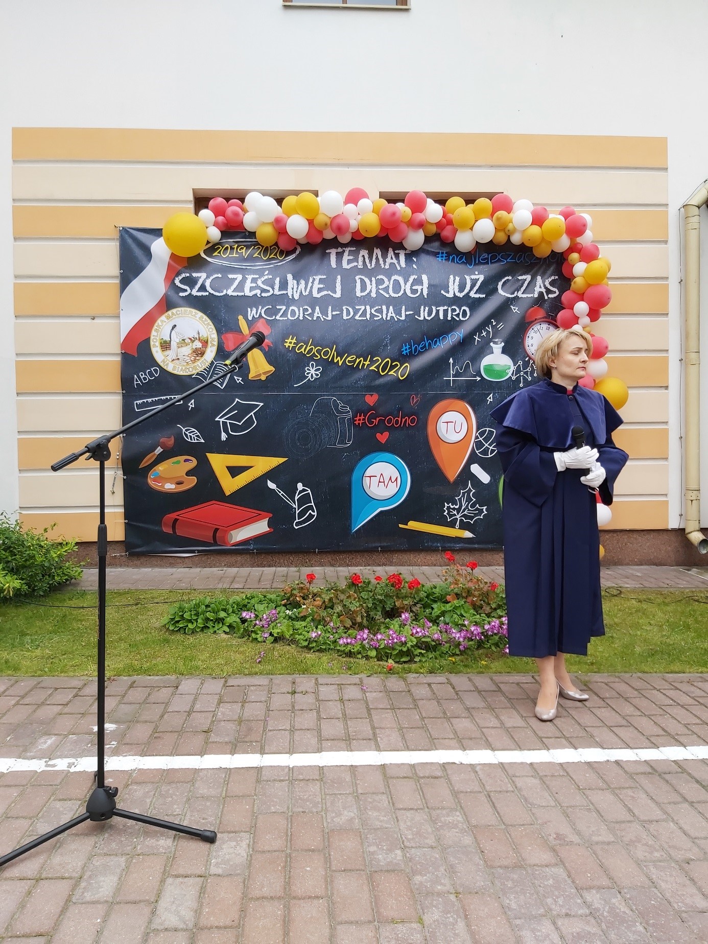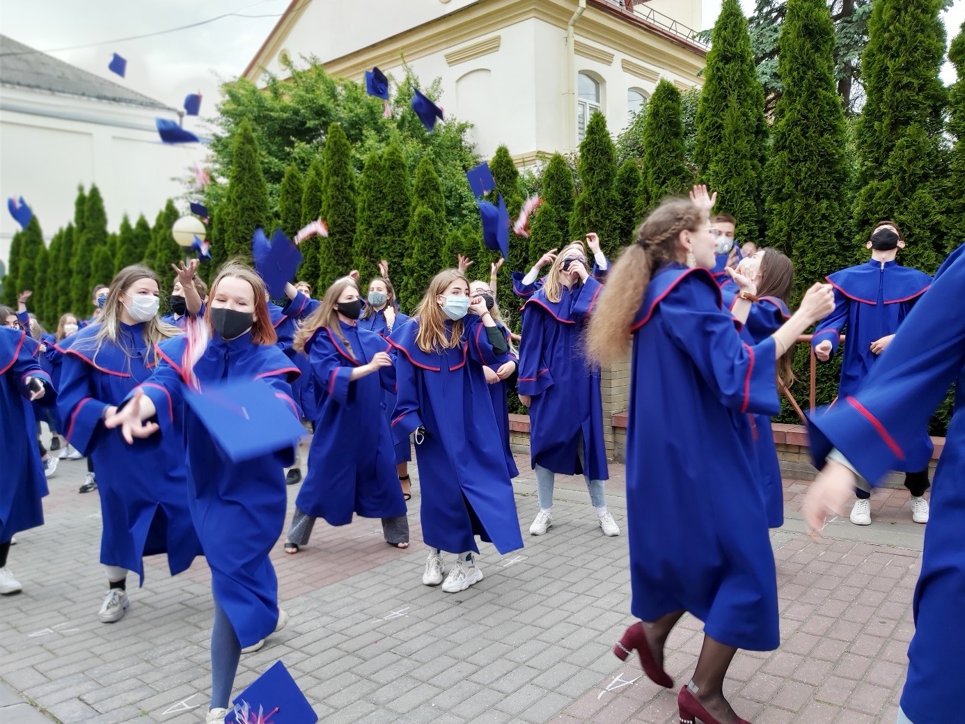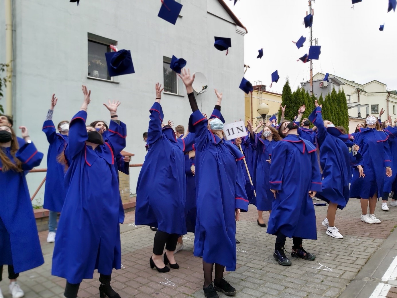 Miało ono szczególna formę. Z uwagi na epidemię koronowirusa uroczystości zostały podzielone na kilka części – aby nie gromadzić zbyt wielu osób na małej przestrzeni przyszkolnego placu. Nie było też rodziców, nie odprawiono tradycyjnej Mszy Św. w kościele katedralnym w Grodnie – po której, przed kościołem, wykonywane były pamiątkowe zdjęcia i rzucano w powietrze birety – dawało to bardzo widowiskowy efekt. Następnie odziani w togi uczniowie ostatnich klas szli w uroczystym pochodzie do szkoły.