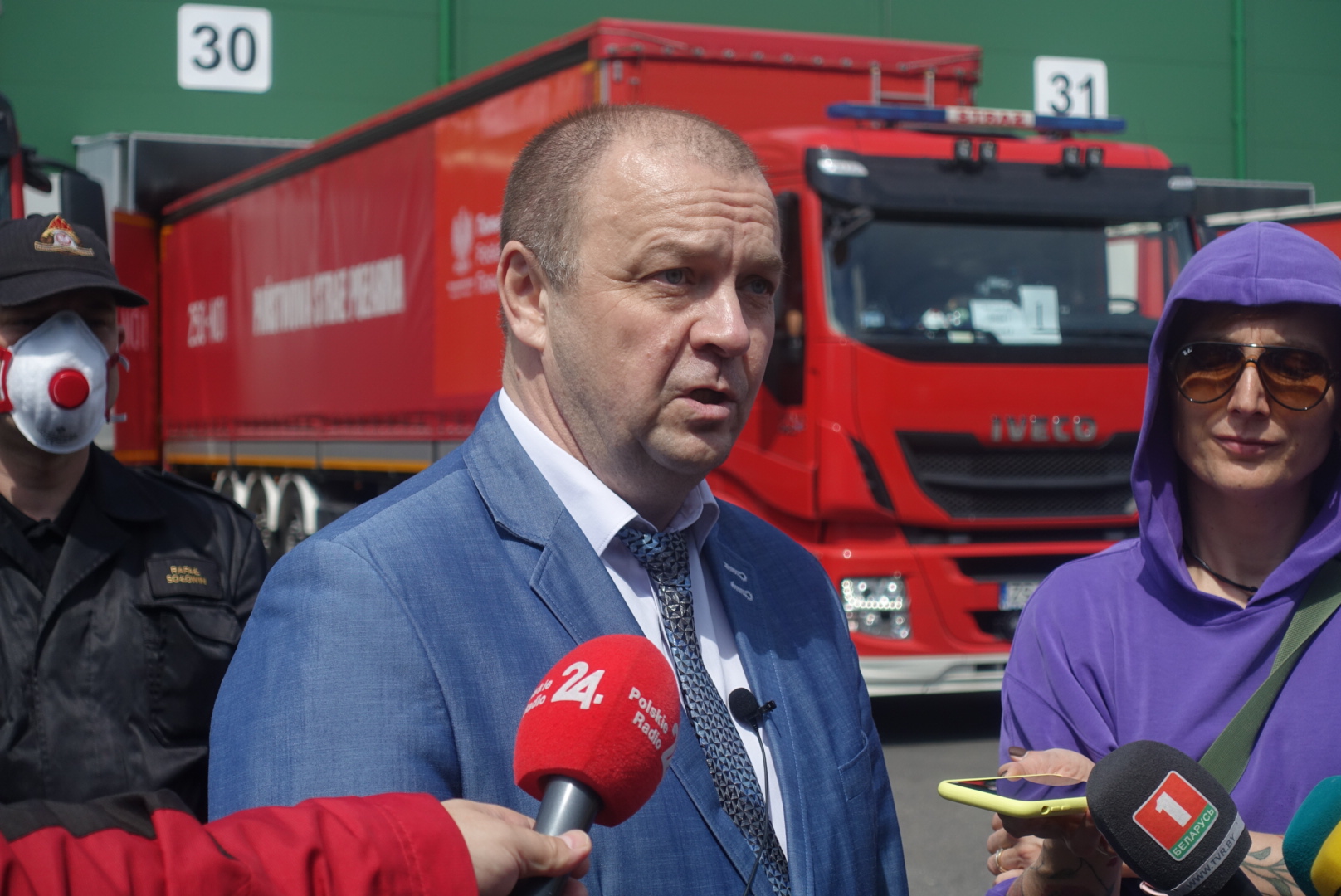 “Дзякуй за чарговы жэст сяброўства і добрасуседства”, – сказаў намеснік міністра аховы здароўя Барыс Андрасюк. Ён дадаў, што на пачатку наступнага тыдня дапамога будзе размеркавана паміж установамі, якія змагаюцца з Covid-19, ва ўсіх рэгіёнах краіны. “Мы вельмі рады, што ў гэты складаны для ўсіх час мы можам дапамагчы”, – падкрэсліў капітан Рафал Саловін з Дзяржаўнай пажарнай службы, які кіраваў транспарціроўкай. Сярод 47 грузавікоў, якія ў пятніцу раніцай прыехалі ў Беларусь, былі транспартныя сродкі пажарнай службы, паліцыі і пагранічнай службы.