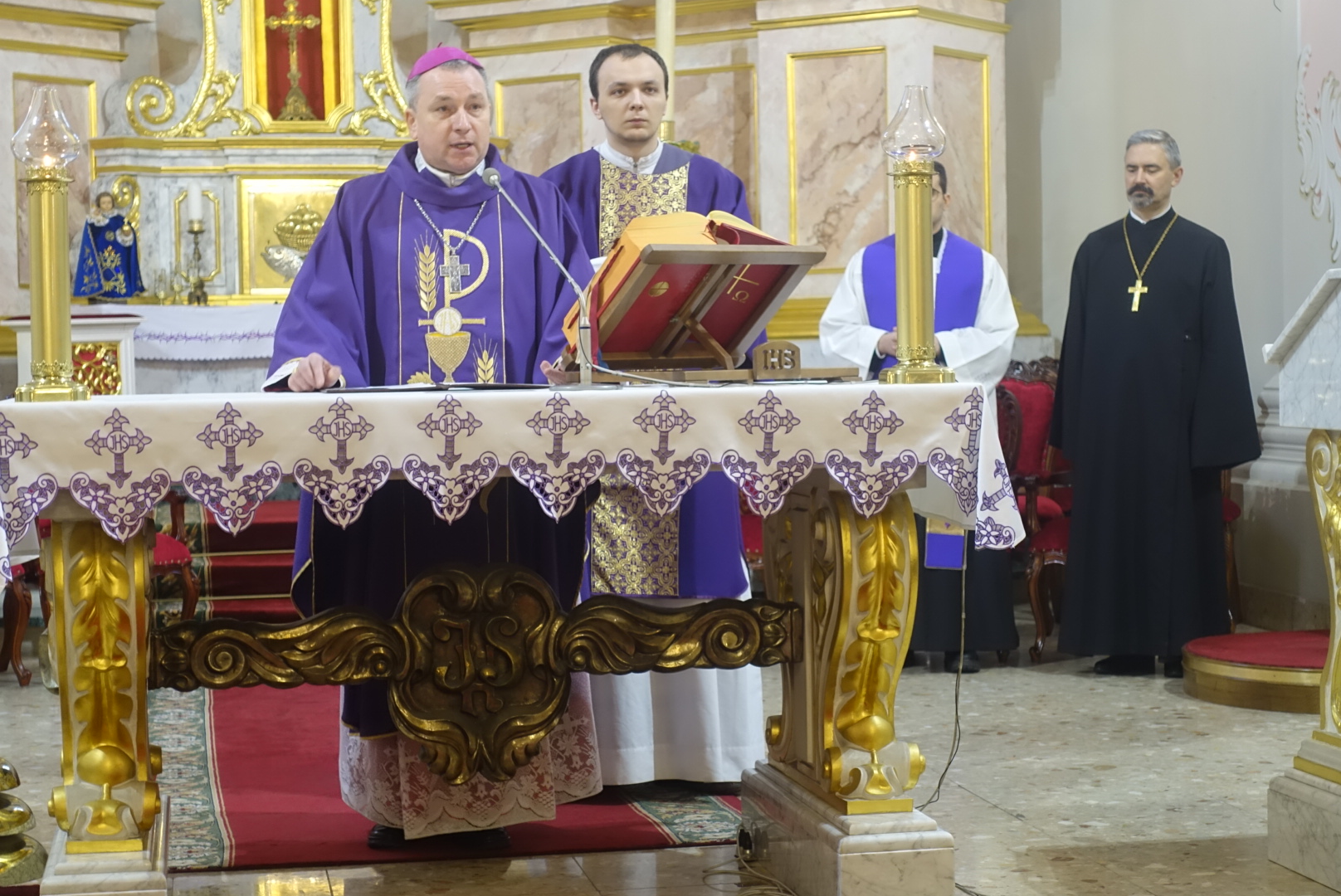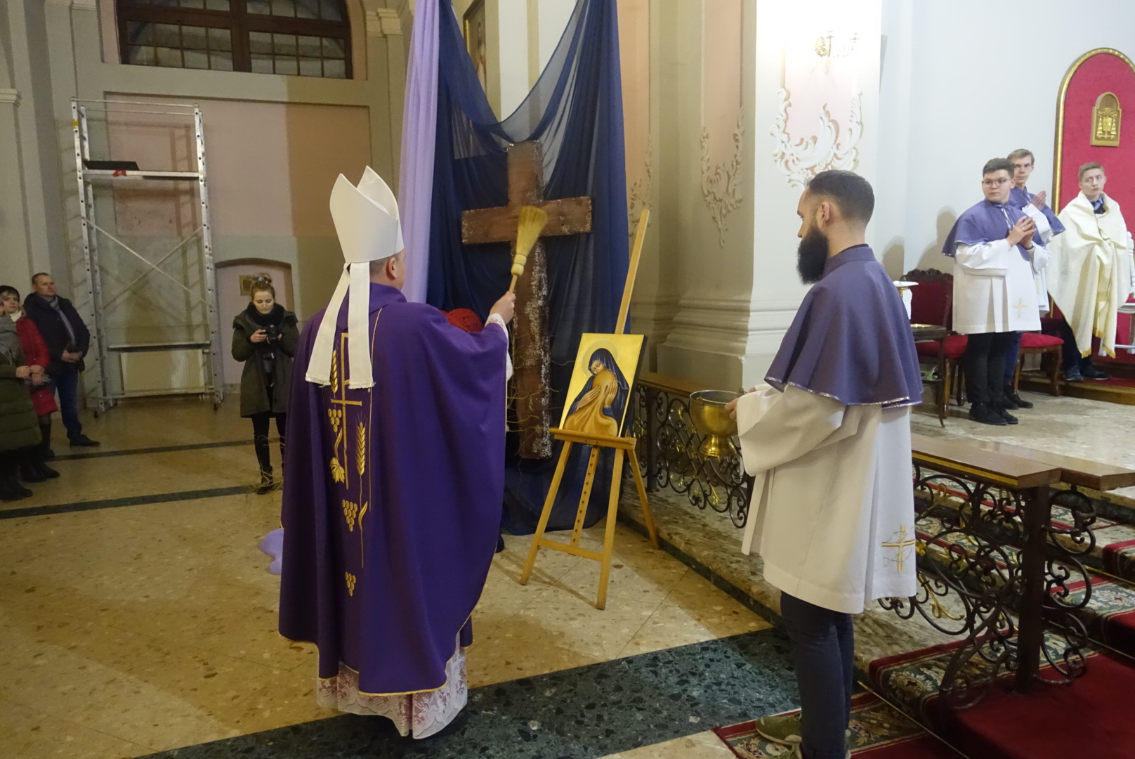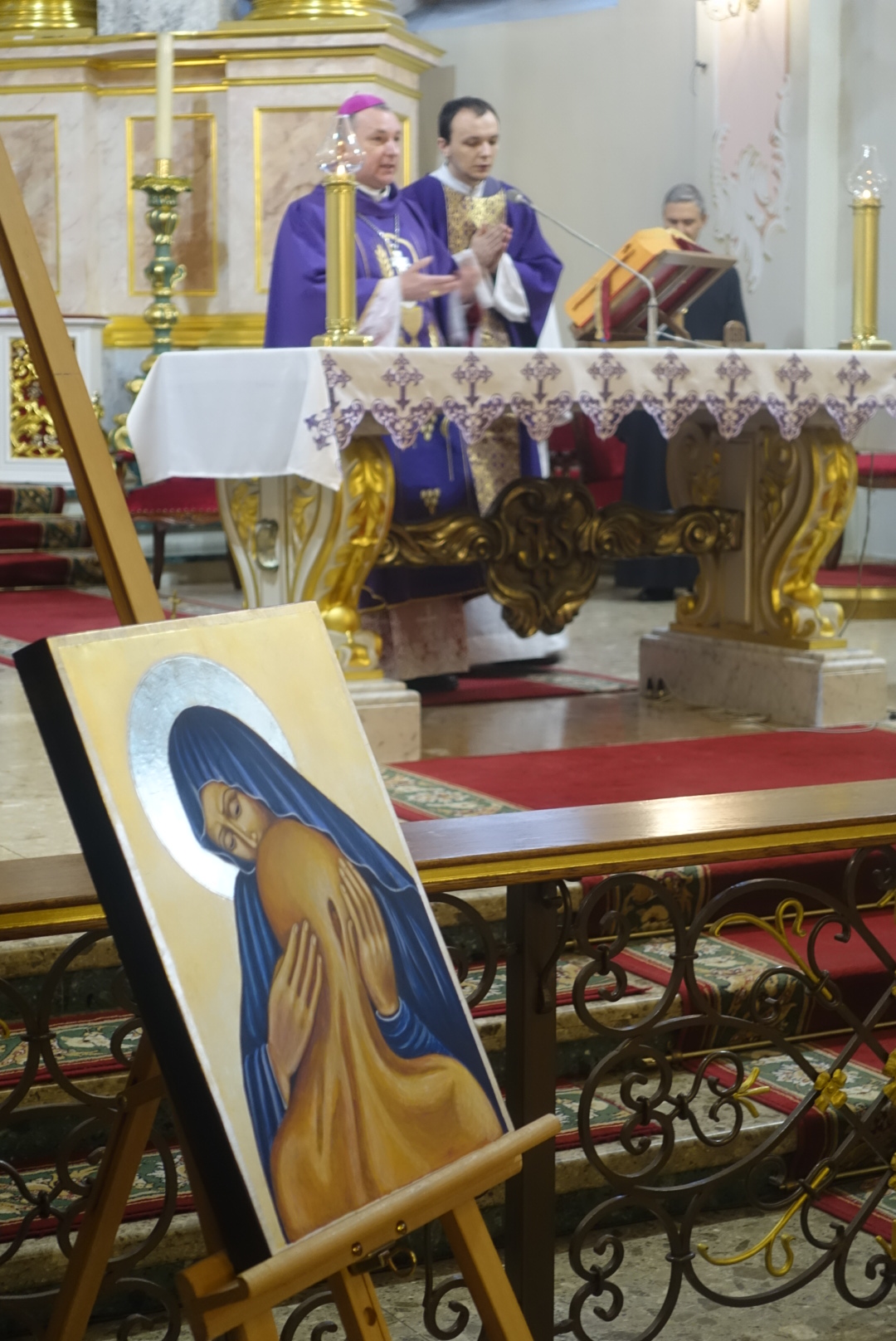 Дапаможны епіскап Мінска-Магілёўскай епархіі ксёндз Юрый Касабудскі, які праводзіў набажэнства, сказаў, што “слова “Катынь” ведае кожны паляк ва ўсім свеце. Катынь стала сімвалам вялікага злачынства. Сёння мы ўспамінаем усіх, хто загінуў у выніку Катынскага злачынства. Іх адзінай віной было тое, што яны былі палякамі”. Падчас набажэнства ў храме быў выстаўлены абраз Маці Божай Катынскай, які пасля набажэнства епіскап Юрый Касабудскі асвяціў. Абраз застанецца ў Архікафедральным касцёле ў Мінску, дзе – як сказаў епіскап – ён будзе сімвалам прысутнасці Бога ў жыцці вернікаў. І будзе нагадваць пра тое, што Маці Божая заўсёды з намі, гатовая прытуліць да сэрца, калі нам дрэнна.