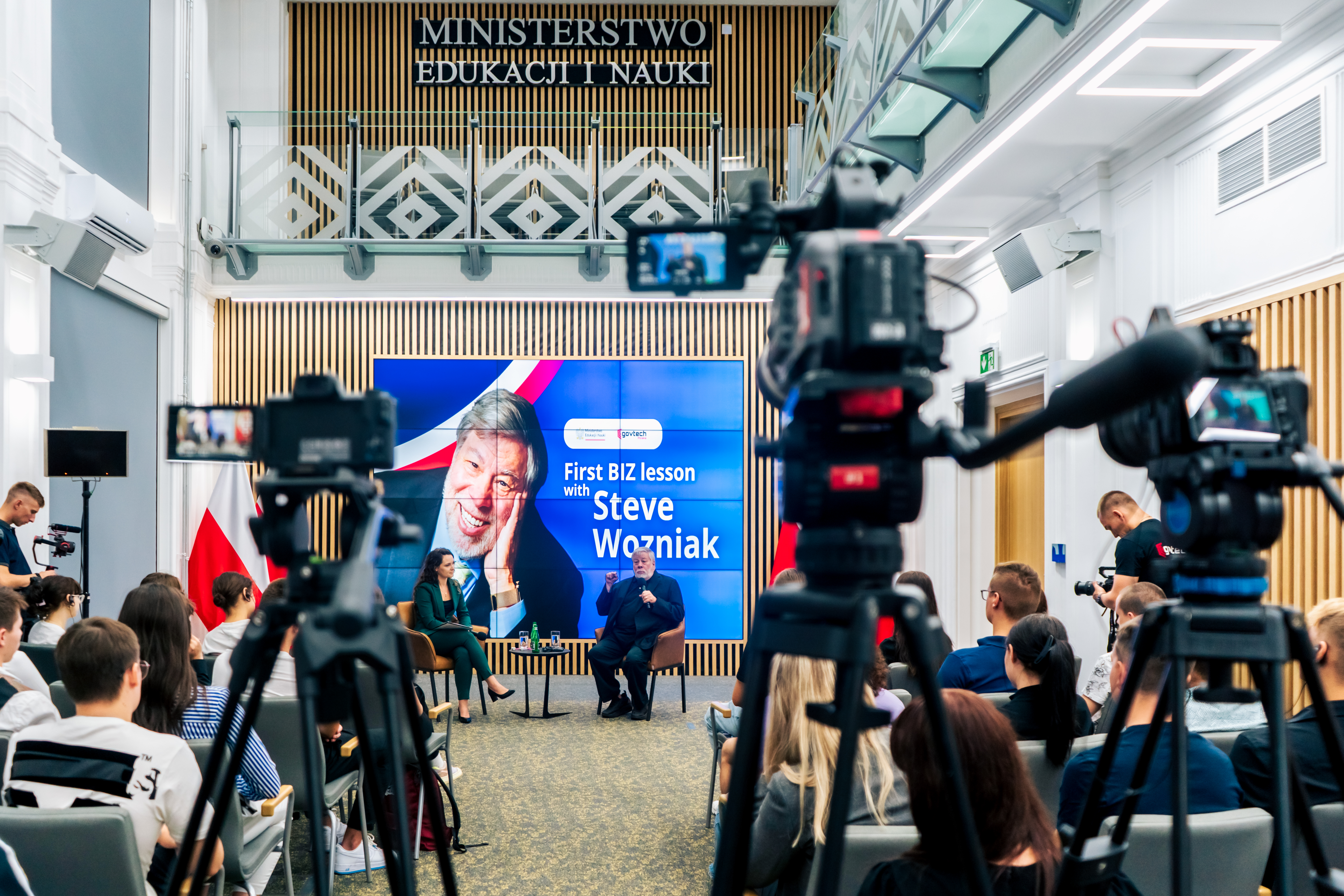 Ministerstwo Edukacji i Nauki oraz Centrum GovTech zapraszają na specjalną pierwszą lekcję BIZ, której gościem był znakomity menedżer, przedsiębiorca i mentor Steve Wozniak, gigant z Doliny Krzemowej, współzałożyciel Apple - jednego z najbardziej rozpoznawalnych przedsiębiorstw technologicznych na świecie. Wraz z rozpoczęciem roku szkolnego 2023/2024 przedmiot biznes i zarządzanie pojawił się na stałe w planie lekcji 532 tyś. uczniów szkół ponadpodstawowych w całej Polsce.