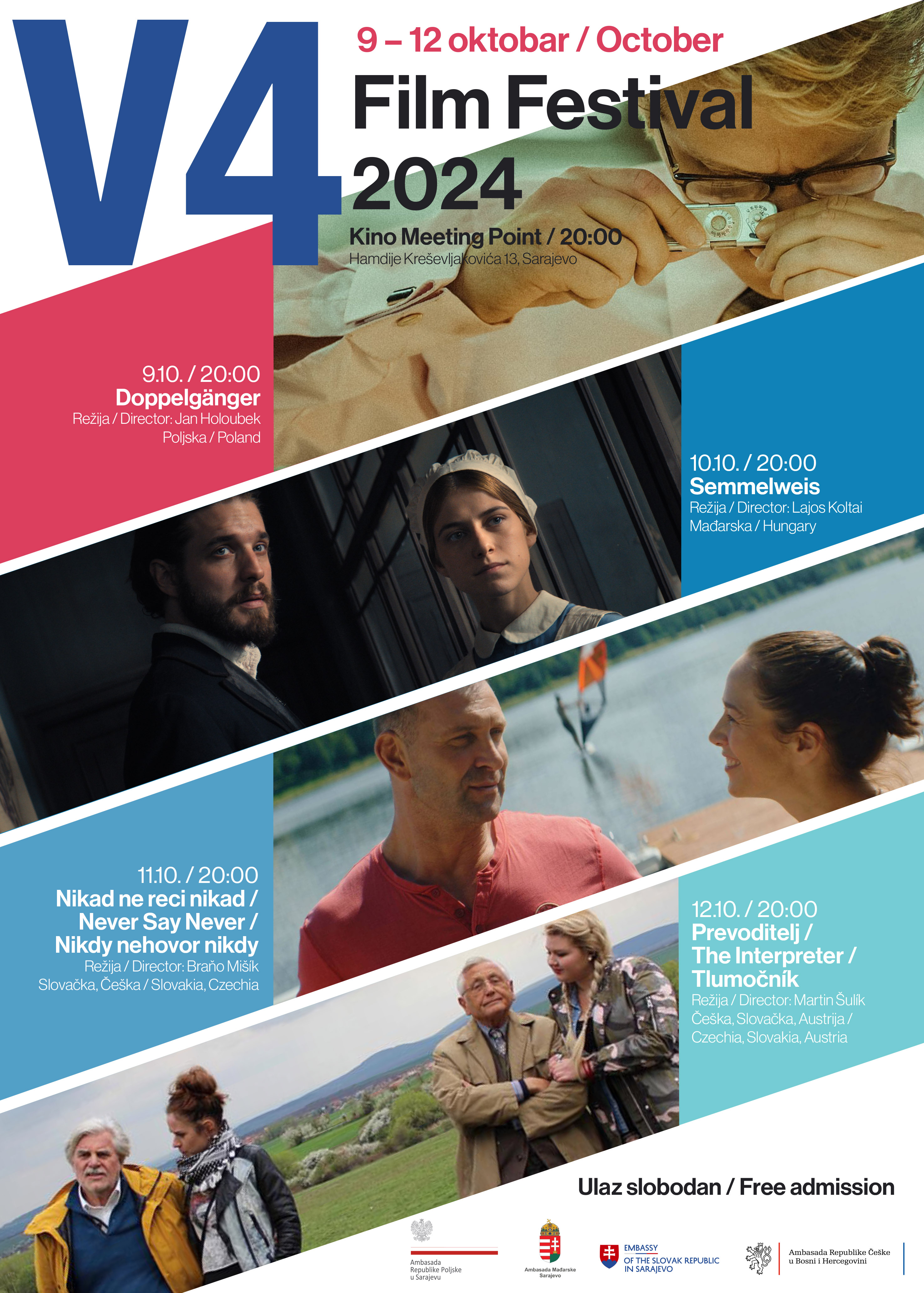 V4 Film Festival koji organiziraju ambasade četiri zemlje Višegradske grupe – Poljske, Mađarske, Slovačke i Češke, održao se u kinu Meeting Point u Sarajevu od 16. do 19. oktobra.